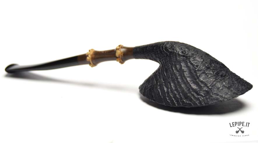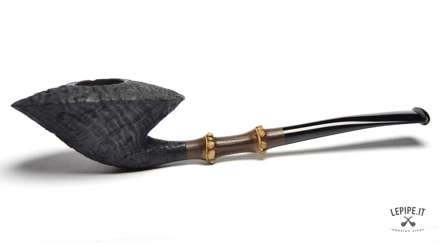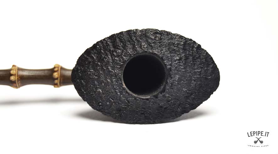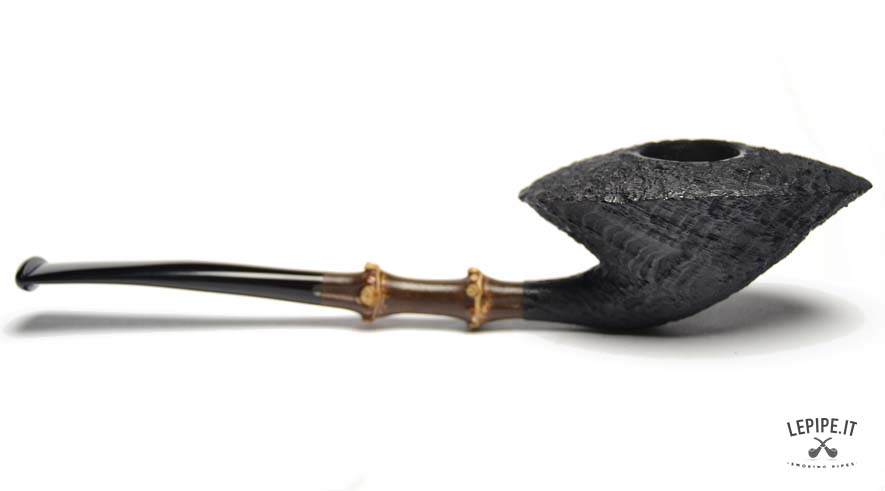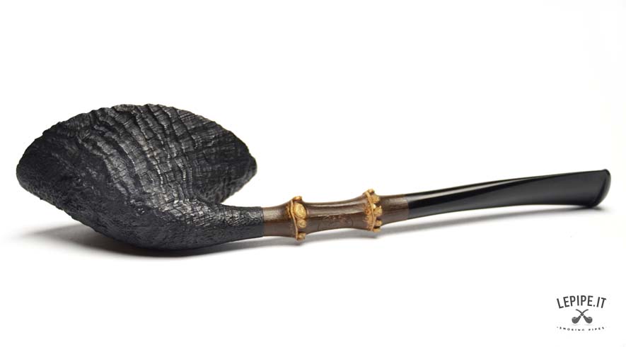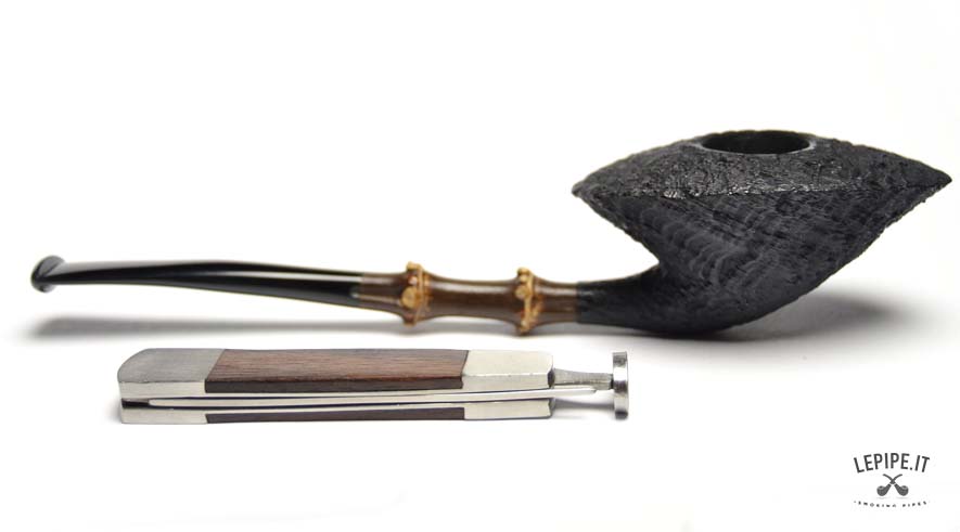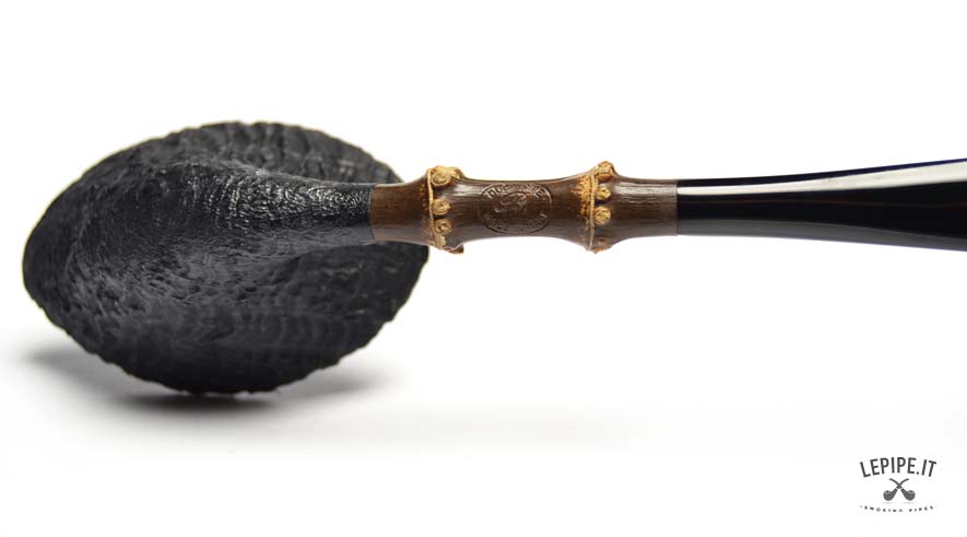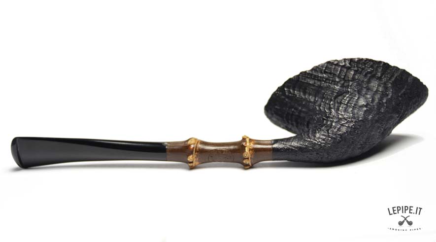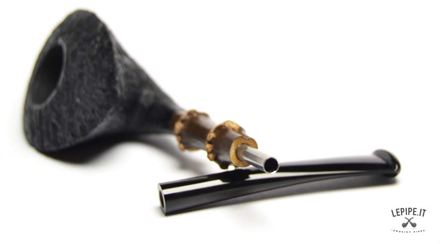 Pipa Il Duca - Barone n. 57  Bocchino in ebanite Senza filtro Sabbiata Con elaborazione in bamboo Diametro Interno: 19 mm. Diametro Esterno: 45 mm. Lunghezza: 172 mm. Altezza: 35 mm. Peso: 30 gr. Profondità: 25 mm.