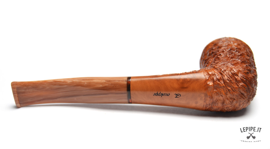 Pipa Bogni - Rusticata n. 162 Stand-Up Bocchino in metacrilato Senza filtro Rusticata Con altra elaborazione Diametro Interno: 20 mm. Diametro Esterno: 34 mm. Lunghezza: 148 mm. Altezza: 47 mm. Peso: 38 gr. Profondità: 36 mm.