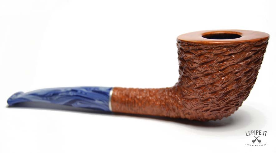 Pipa Bogni - Rusticata n. 165  Bocchino in metacrilato Senza filtro Rusticata Con altra elaborazione Diametro Interno: 21 mm. Diametro Esterno: 39 mm. Lunghezza: 165 mm. Altezza: 51 mm. Peso: 61 gr. Profondità: 39 mm.