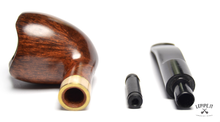 Pipa Bogni - Liscia n. 110  Bocchino in metacrilato Con sede per filtro da 9 mm. Liscia Con altra elaborazione Diametro Interno: 23 mm. Diametro Esterno: 43 mm. Lunghezza: 145 mm. Altezza: 53 mm. Peso: 47 gr. Profondità: 40 mm.
