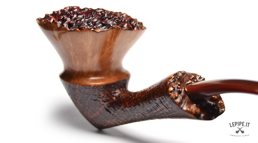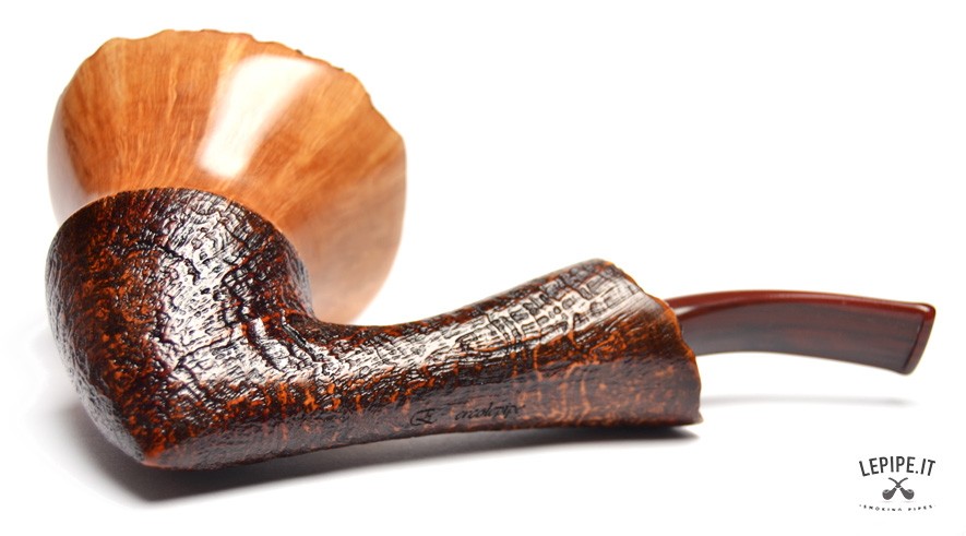 Pipa Bogni - Liscia n. 125  Bocchino in metacrilato Senza filtro Semi sabbiata Senza elaborazione Diametro Interno: 22 mm. Diametro Esterno: 67 mm. Lunghezza: 167 mm. Altezza: 84 mm. Peso: 118 gr. Profondità: 70 mm.