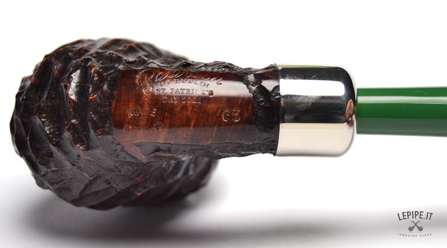 Pipa Peterson - St Patricks Day 2022 n. 26 Con posapipe in omaggio Bocchino in metacrilato Senza filtro Rusticata Con altra elaborazione Diametro Interno: 18 mm. Diametro Esterno: 33 mm. Lunghezza: 141 mm. Altezza: 42 mm. Peso: 35 gr. Profondità: 36 mm.