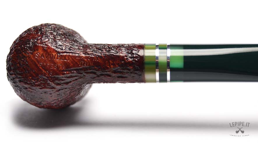 Pipa Savinelli - Foresta n. 4 Mod. 106 Bocchino in metacrilato Con sede per filtro da 6 mm. Rusticata Con altra elaborazione Diametro Interno: 20 mm. Diametro Esterno: 35 mm. Lunghezza: 137 mm. Altezza: 42 mm. Peso: 38 gr. Profondità: 35 mm.
