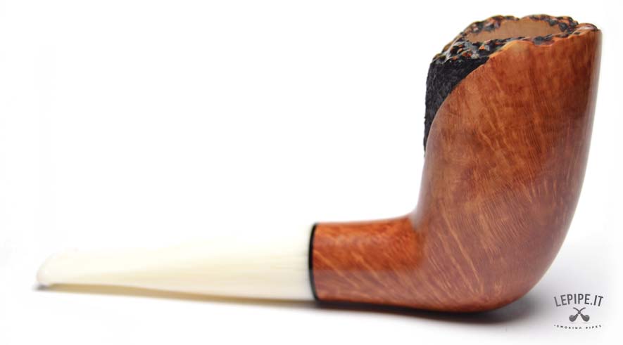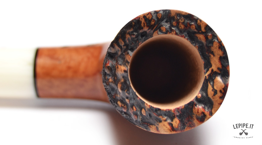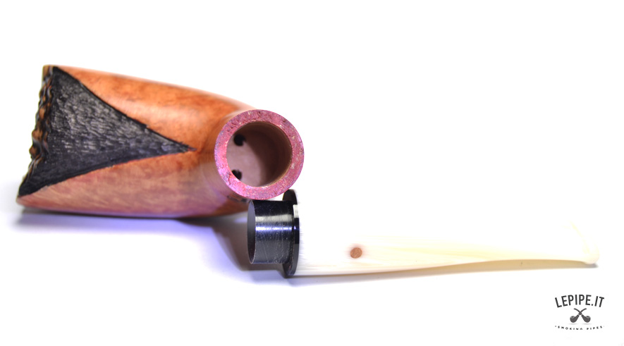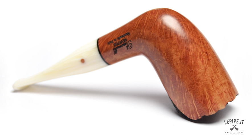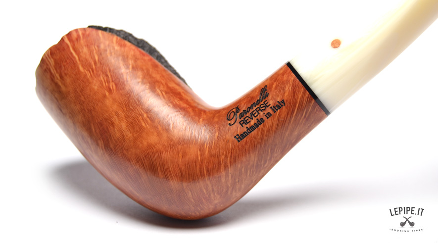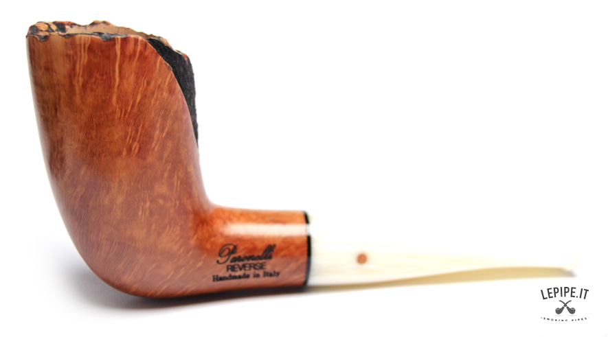 Pipa Paronelli - Reverse n. 13  Bocchino in metacrilato Calabash reverse system Semi rusticata Senza elaborazione Diametro Interno: 21 mm. Diametro Esterno: 37 mm. Lunghezza: 143 mm. Altezza: 66 mm. Peso: 56 gr. Profondità: 53 mm.