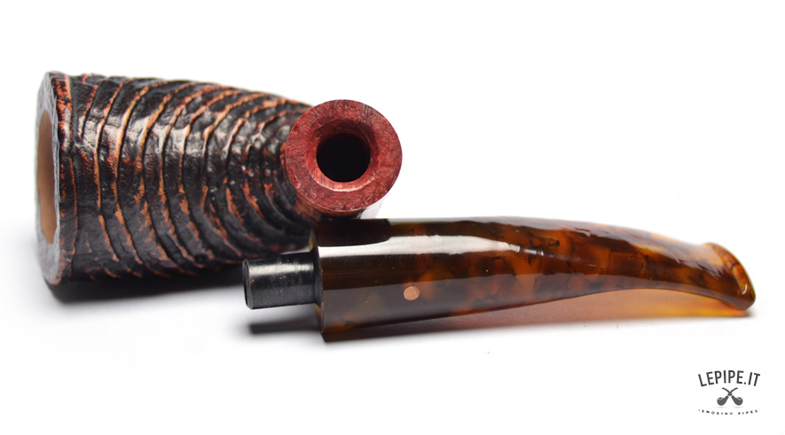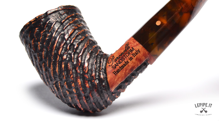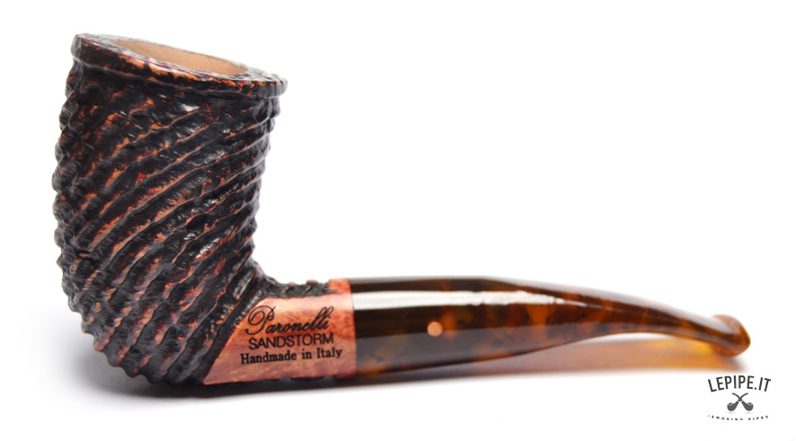 Pipa Paronelli - Sandstorm n. 18  Bocchino in metacrilato Senza filtro Rusticata Senza elaborazione Diametro Interno: 21 mm. Diametro Esterno: 33 mm. Lunghezza: 122 mm. Altezza: 55 mm. Peso: 35 gr. Profondità: 46 mm.