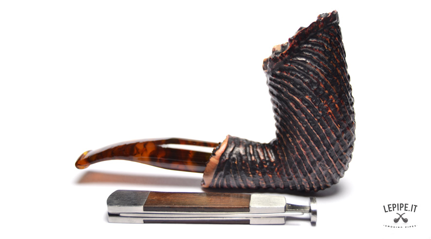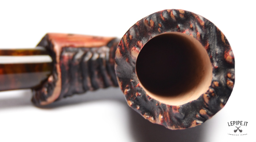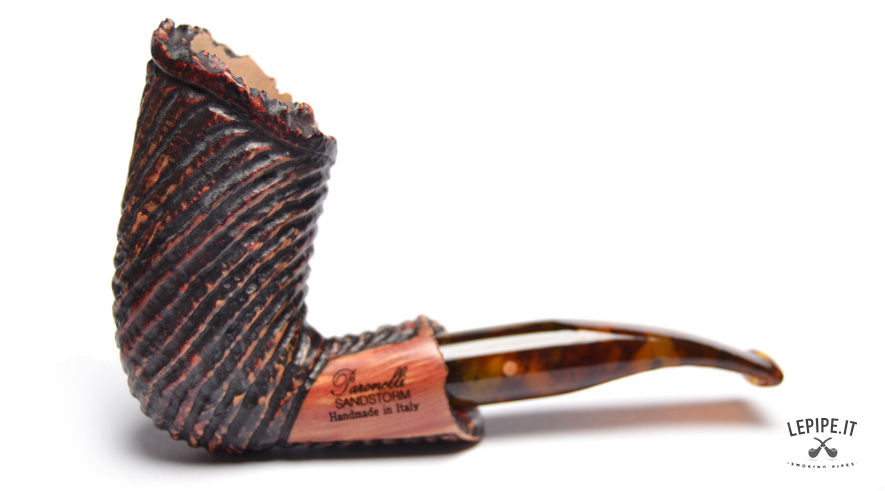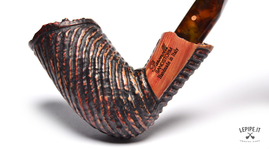 Pipa Paronelli - Sandstorm n. 20  Bocchino in metacrilato Senza filtro Rusticata Senza elaborazione Diametro Interno: 20 mm. Diametro Esterno: 36 mm. Lunghezza: 134 mm. Altezza: 78 mm. Peso: 60 gr. Profondità: 54 mm.