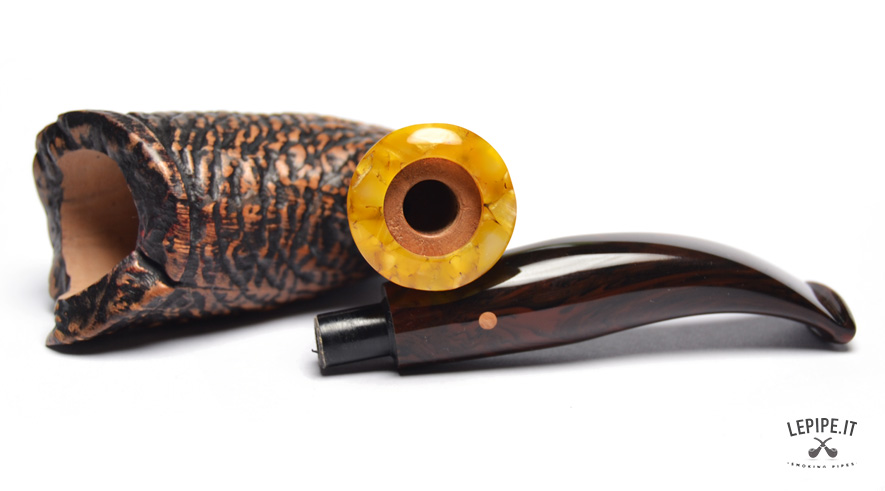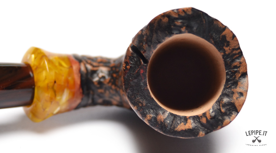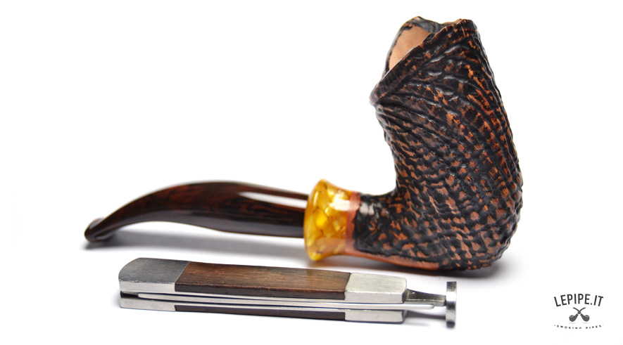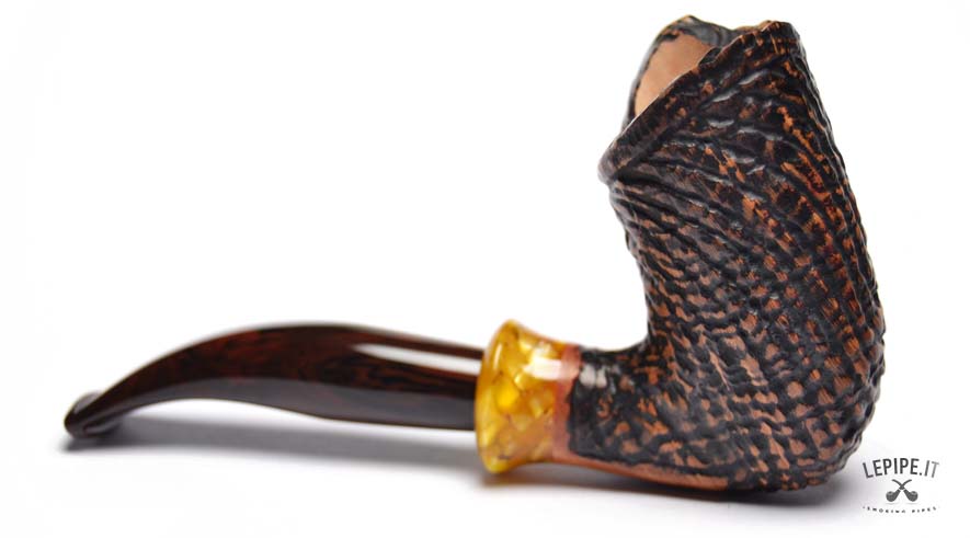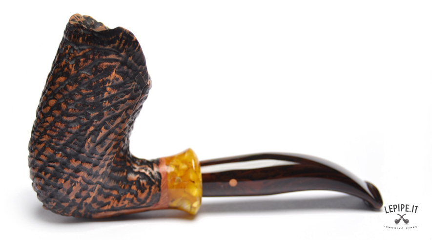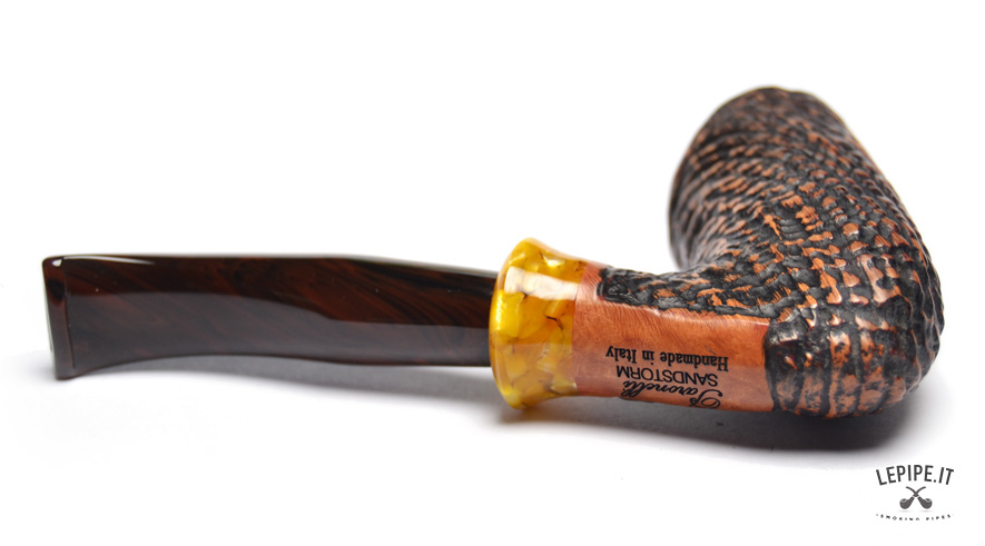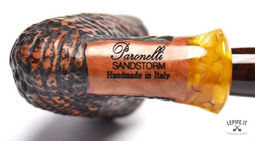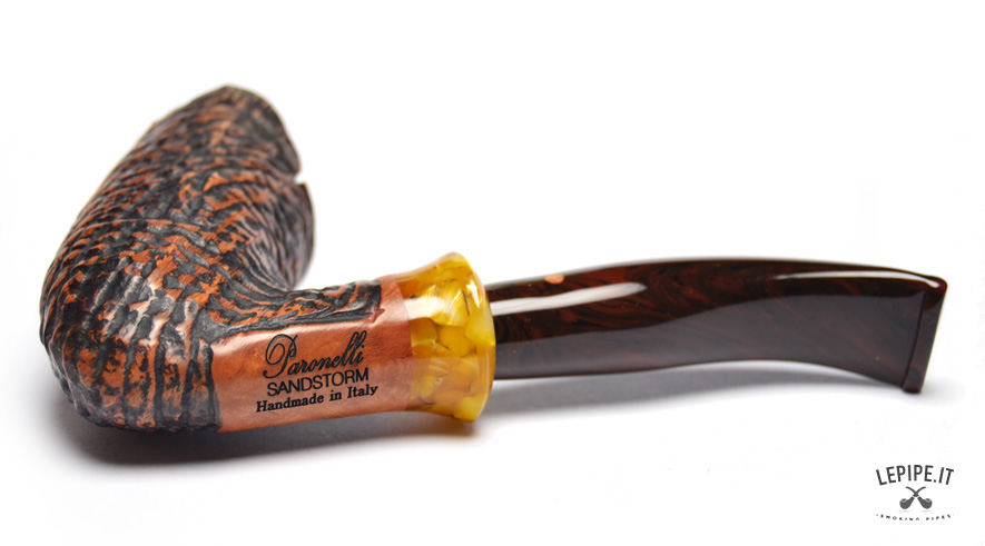 Pipa Paronelli - Sandstorm n. 21  Bocchino in metacrilato Senza filtro Rusticata Con altra elaborazione Diametro Interno: 20 mm. Diametro Esterno: 33 mm. Lunghezza: 126 mm. Altezza: 64 mm. Peso: 45 gr. Profondità: 45 mm.