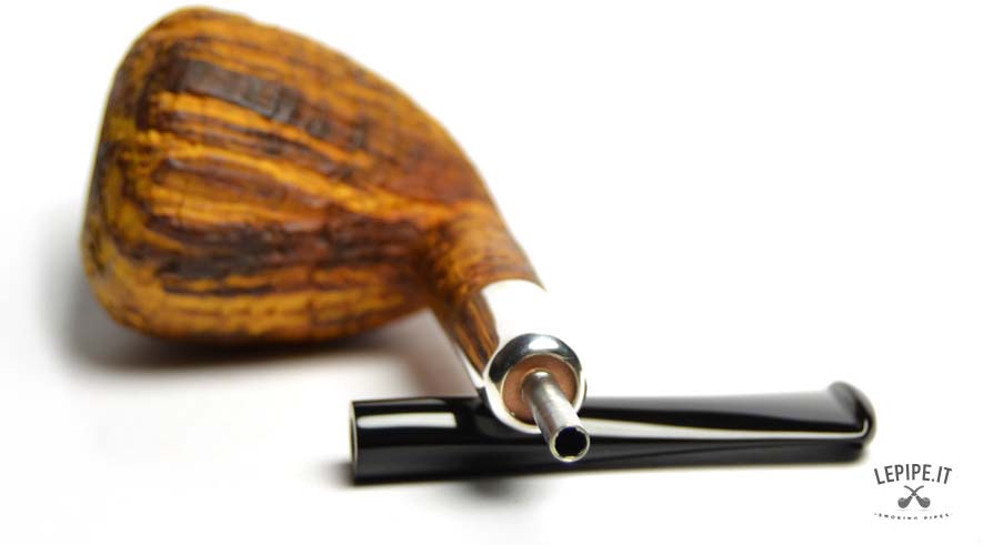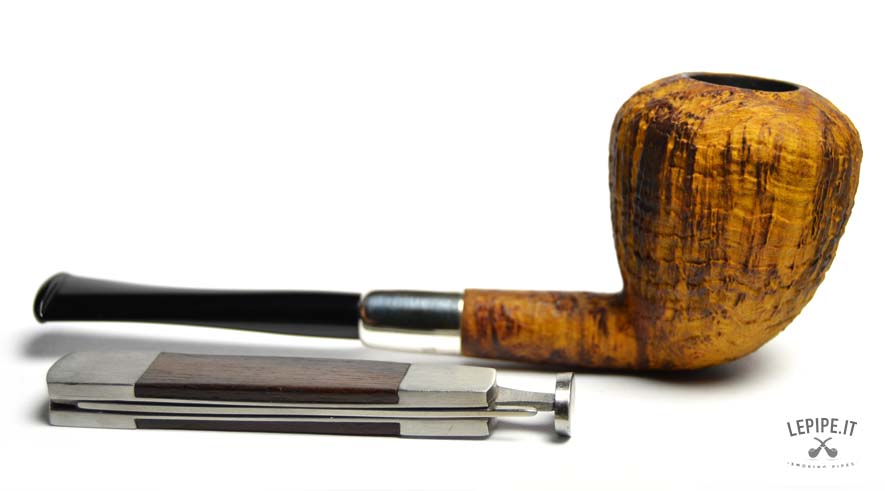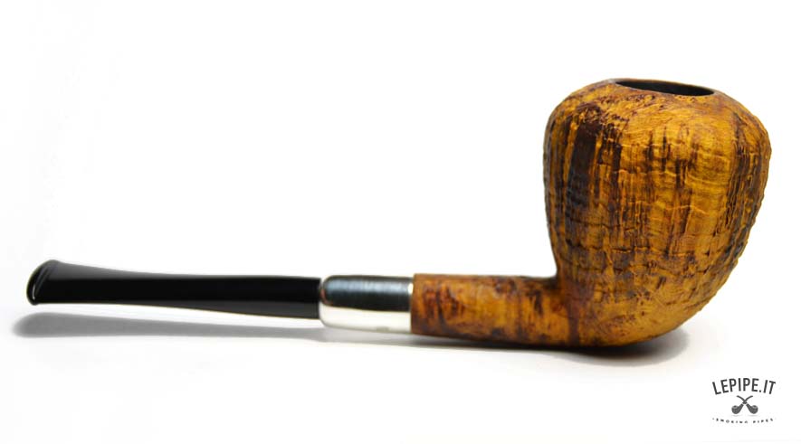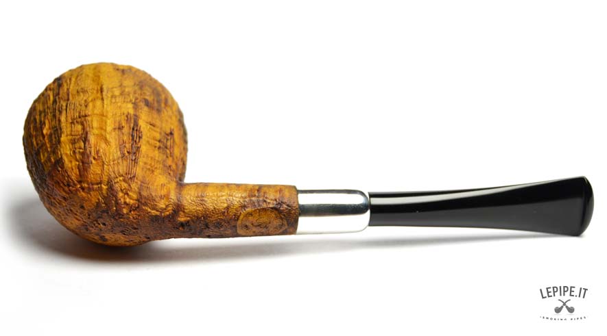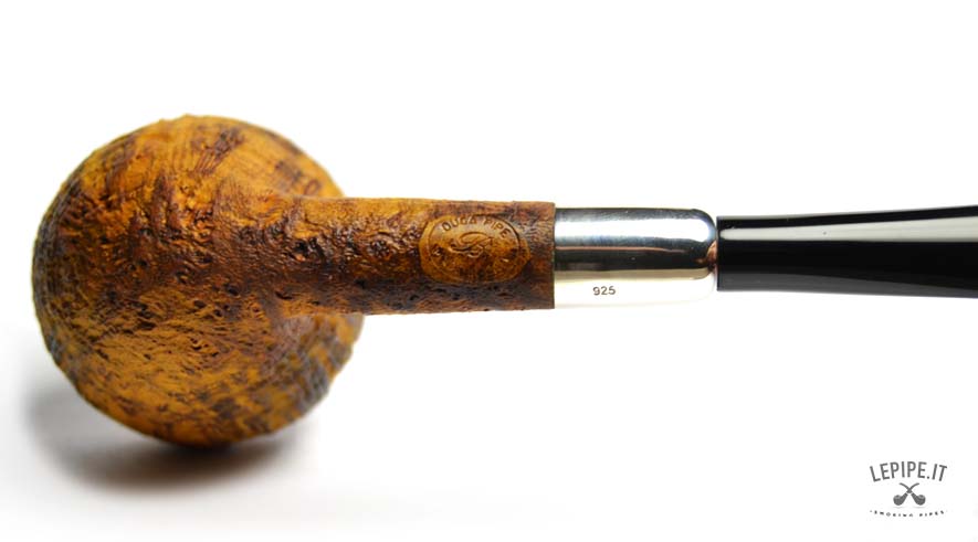 Pipa Il Duca - Barone n. 62  Bocchino in ebanite Senza filtro Sabbiata Con elaborazione in argento Diametro Interno: 18 mm. Diametro Esterno: 41 mm. Lunghezza: 146 mm. Altezza: 51 mm. Peso: 45 gr. Profondità: 40 mm.