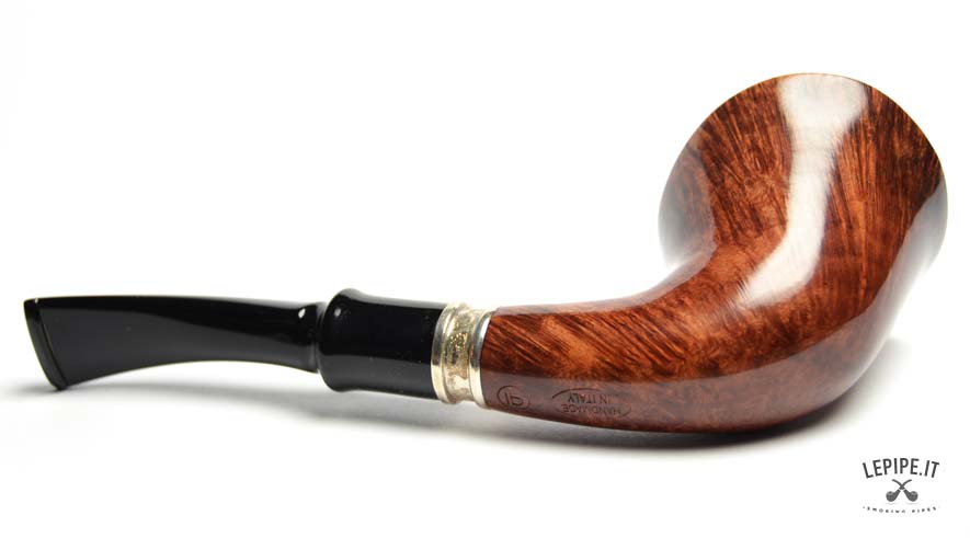 Pipa Pascucci - Liscia P1 n. 53  Bocchino in metacrilato Senza filtro Liscia Con elaborazione in argento Diametro Interno: 20 mm. Diametro Esterno: 51 mm. Lunghezza: 154 mm. Altezza: 48 mm. Peso: 54 gr. Profondità: 36 mm.