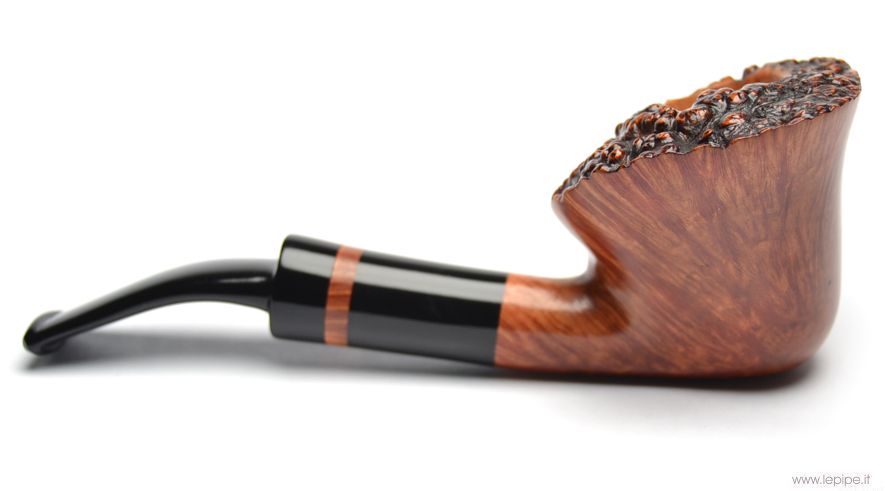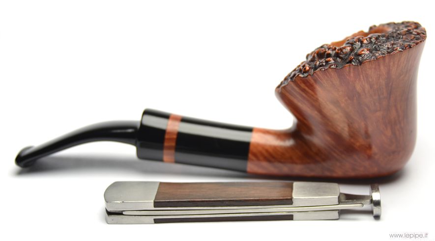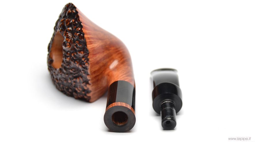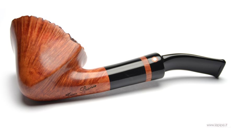 Pipa Spanu - F n. 34  Bocchino in metacrilato Senza filtro Liscia Con altra elaborazione Diametro Interno: 22 mm. Diametro Esterno: 59 mm. Lunghezza: 145 mm. Altezza: 50 mm. Peso: 59 gr. Profondità: 43 mm.