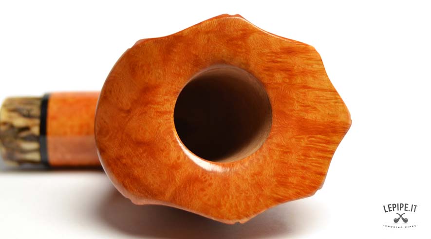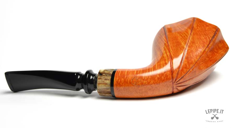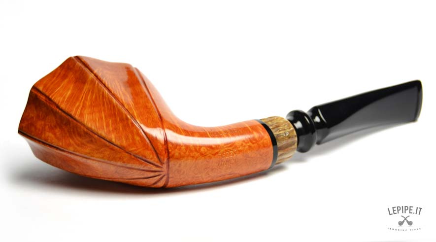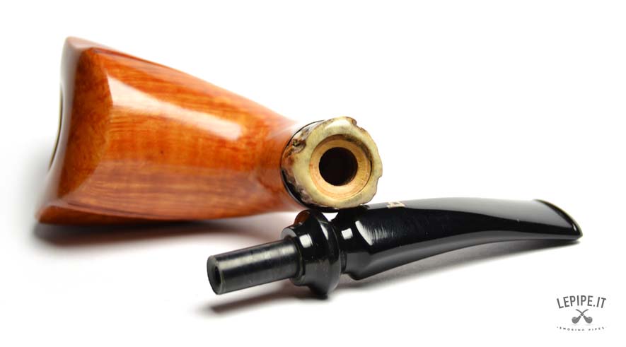 Pipa Pascucci - Pezzo Unico n. 21  Bocchino in metacrilato Senza filtro Liscia Con elaborazione in corno Diametro Interno: 20 mm. Diametro Esterno: 44 mm. Lunghezza: 163 mm. Altezza: 55 mm. Peso: 63 gr. Profondità: 44 mm.