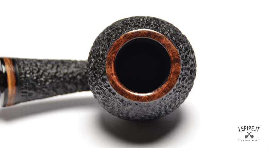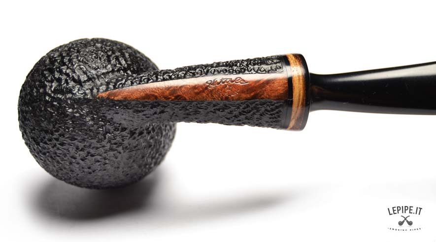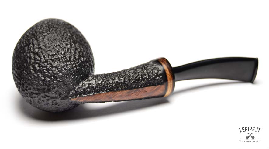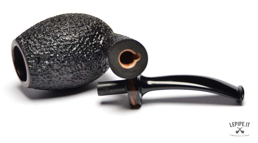 Pipa Vitale - n. 127  Bocchino in ebanite Senza filtro Rusticata Senza elaborazione Diametro Interno: 20 mm. Diametro Esterno: 42 mm. Lunghezza: 135 mm. Altezza: 58 mm. Peso: 53 gr. Profondità: 43 mm.