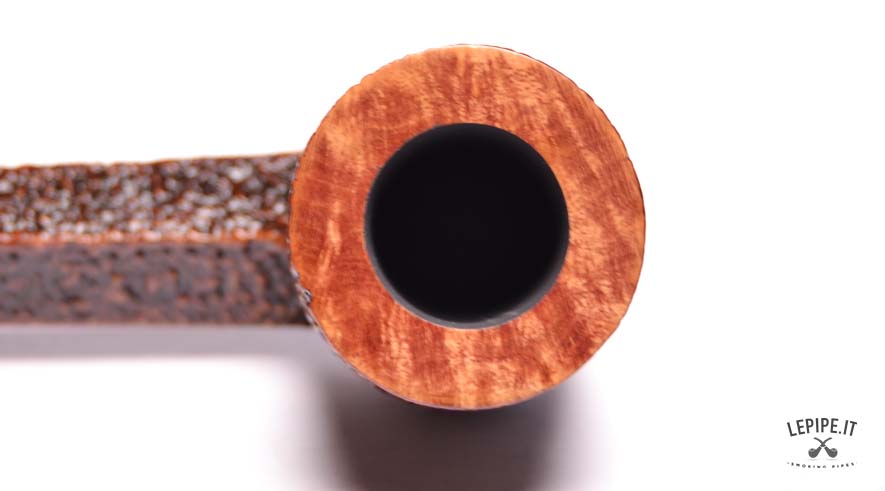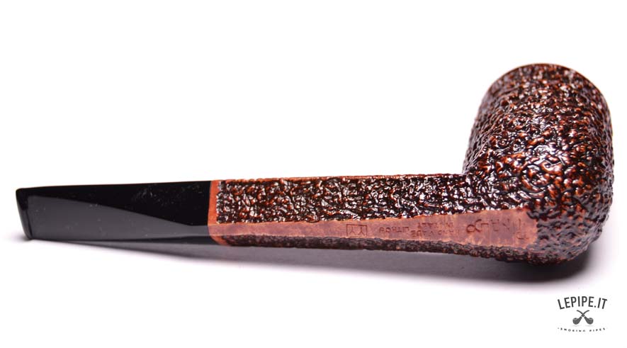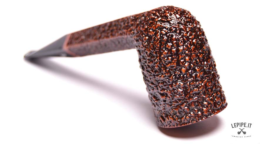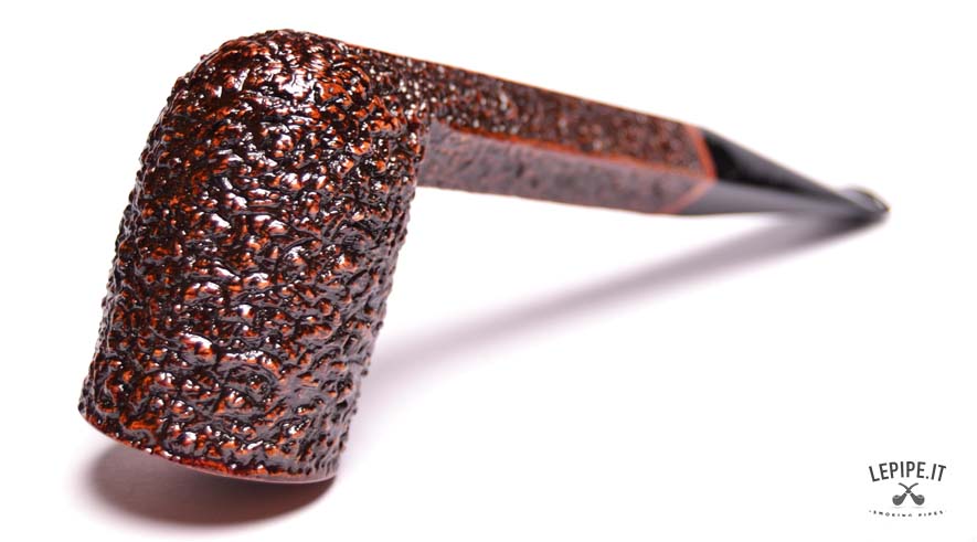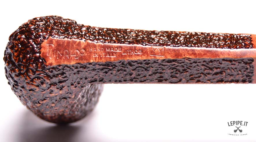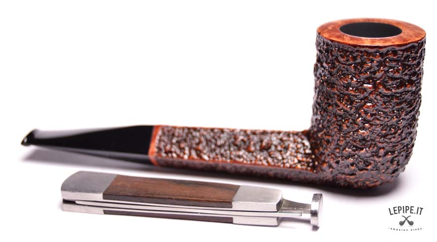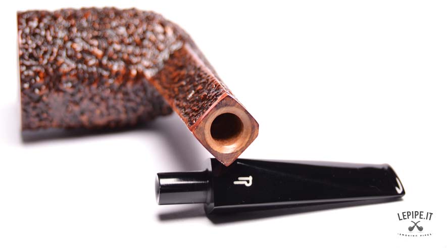 Pipa Rinaldo - Lithos n. 47  Bocchino in metacrilato Senza filtro Rusticata Senza elaborazione Diametro Interno: 19 mm. Diametro Esterno: 35 mm. Lunghezza: 145 mm. Altezza: 55 mm. Peso: 52 gr. Profondità: 37 mm.