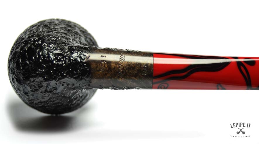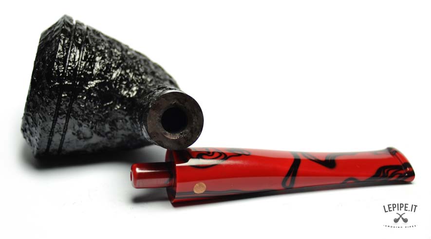Pipa Moretti - Rusticata n. 63  Bocchino in metacrilato Senza filtro Rusticata Senza elaborazione Diametro Interno: 19 mm. Diametro Esterno: 51 mm. Lunghezza: 161 mm. Altezza: 54 mm. Peso: 68 gr. Profondità: 38 mm.