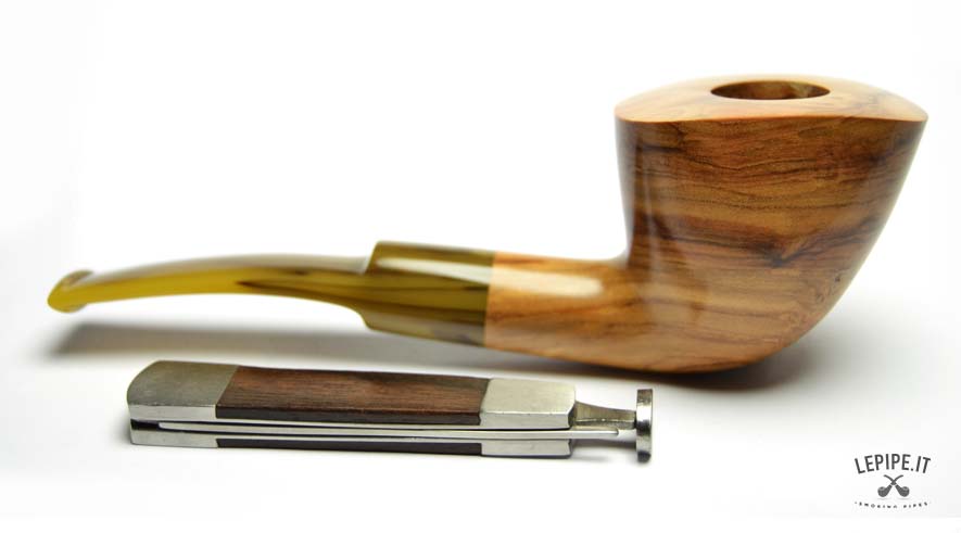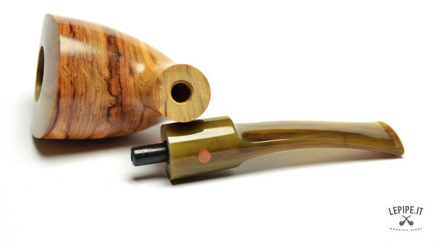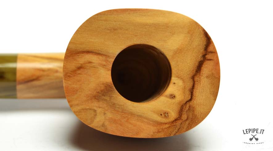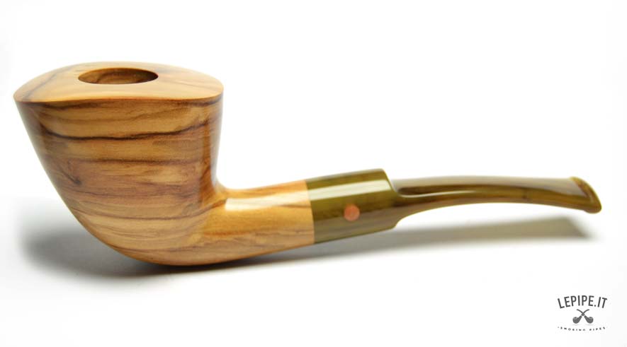 Pipa Moretti - Ulivo n. 2  Bocchino in metacrilato Senza filtro In legno di ulivo Senza elaborazione Diametro Interno: 19 mm. Diametro Esterno: 43 mm. Lunghezza: 154 mm. Altezza: 50 mm. Peso: 71 gr. Profondità: 32 mm.