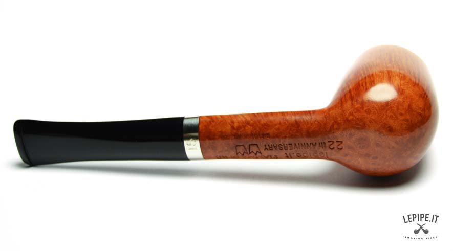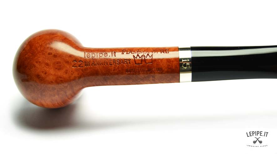 Questa pipa dritta Billiard, creata per celebrare il ventiduesimo anniversario di LePipe.it, incarna l’eccellenza artigianale di Fiamma di Re. Con una finitura liscia che esalta la qualità della radica, questa pipa si distingue per il fornello da 20 mm di diametro e 35 mm di profondità, perfetto per una fumata lunga e appagante. La sua lunghezza di 139 mm e il peso di 34 grammi la rendono leggera e maneggevole, ideale per chi cerca un’elegante pipa quotidiana. Il bocchino in metacrilato offre resistenza e comfort. Incluso in omaggio, un esclusivo pigino in radica che aggiunge un tocco raffinato a questa edizione speciale. Prezzo: 254,00 € (+ iva).