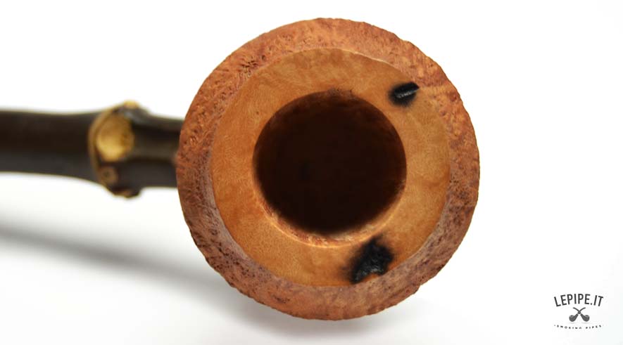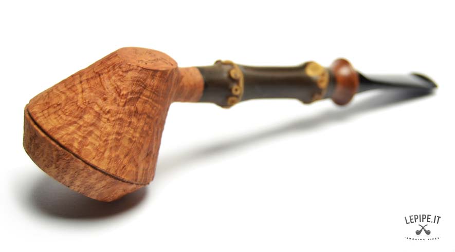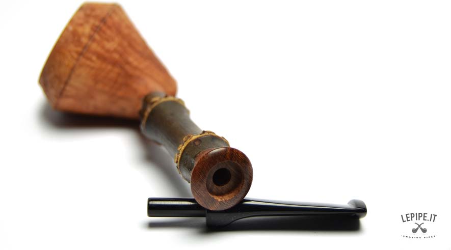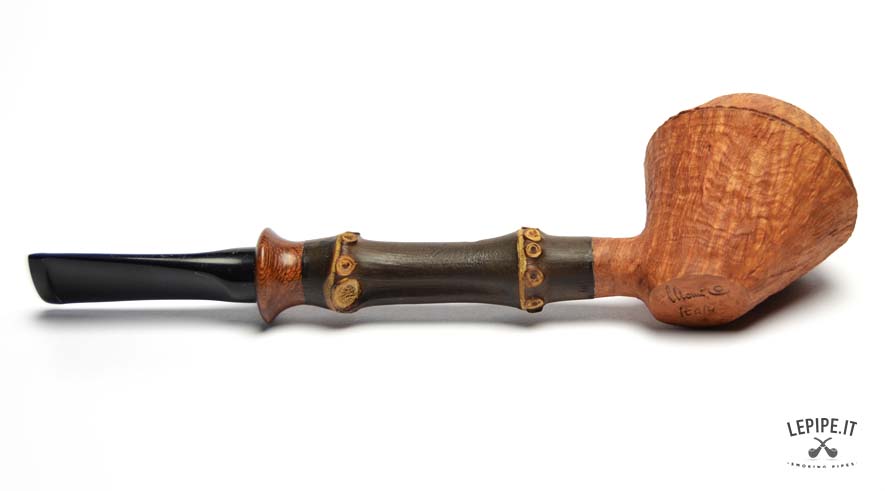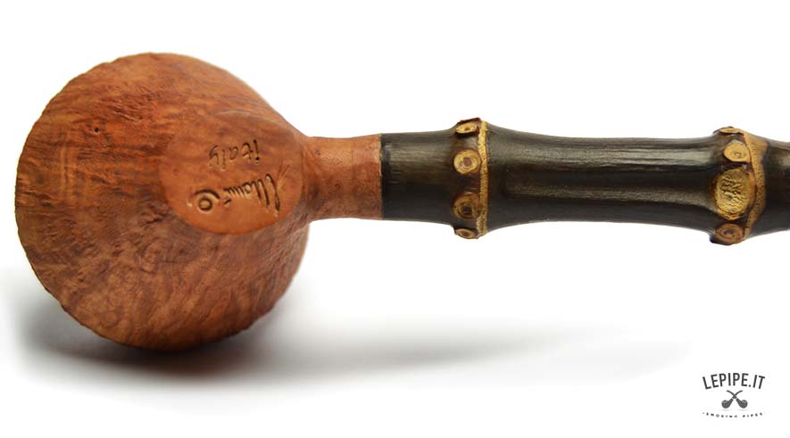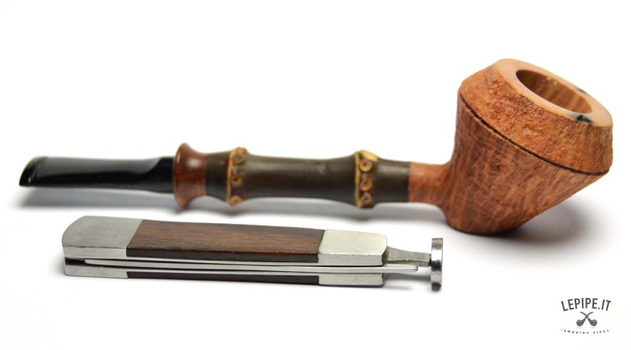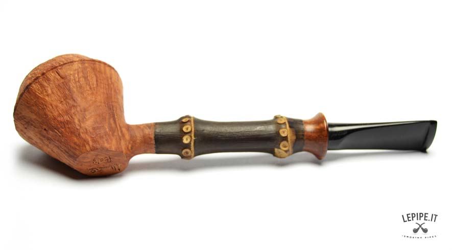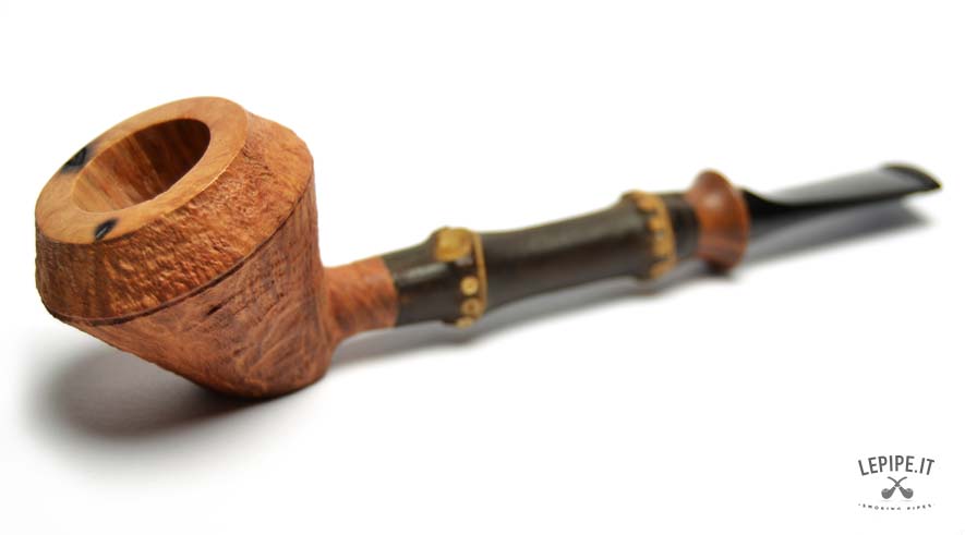 Pipa Manù - n. 1 Stand-Up Bocchino in ebanite Senza filtro Sabbiata Con elaborazione in bamboo Diametro Interno: 19 mm. Diametro Esterno: 40 mm. Lunghezza: 146 mm. Altezza: 40 mm. Peso: 25 gr. Profondità: 27 mm.