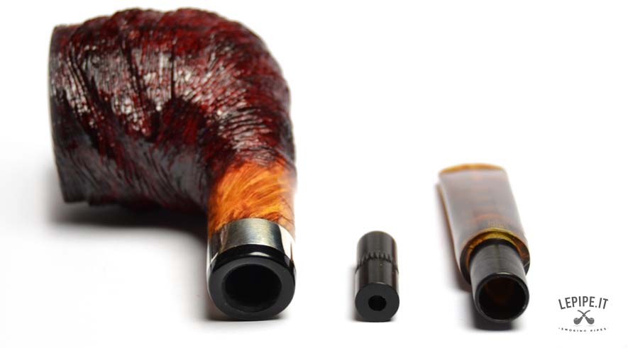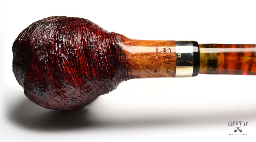 Pipa Winslow - Gruppo E n. 10 Stand-Up Bocchino in metacrilato Con sede per filtro da 9 mm. Semi rusticata Con elaborazione in argento Diametro Interno: 20 mm. Diametro Esterno: 44 mm. Lunghezza: 143 mm. Altezza: 53 mm. Peso: 73 gr. Profondità: 41 mm.