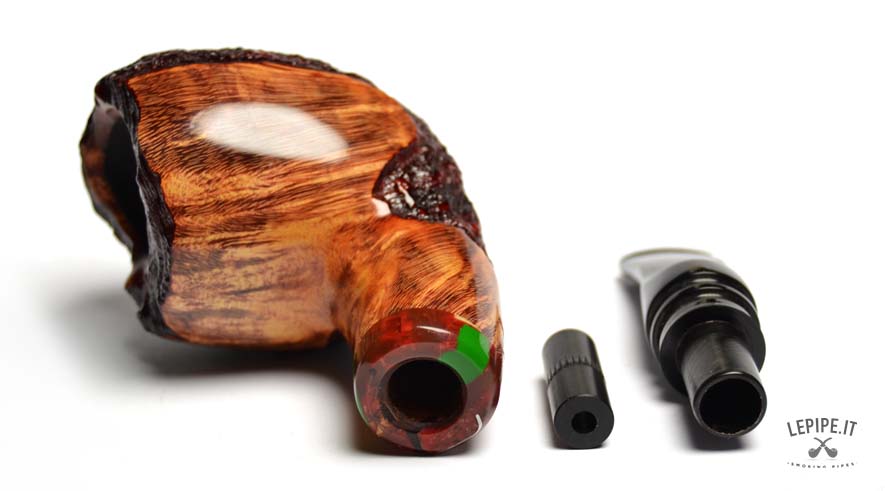 Pipa Winslow - Gruppo E n. 18 Stand-Up Bocchino in metacrilato Con sede per filtro da 9 mm. Semi rusticata Con altra elaborazione Diametro Interno: 19 mm. Diametro Esterno: 46 mm. Lunghezza: 127 mm. Altezza: 49 mm. Peso: 70 gr. Profondità: 34 mm.