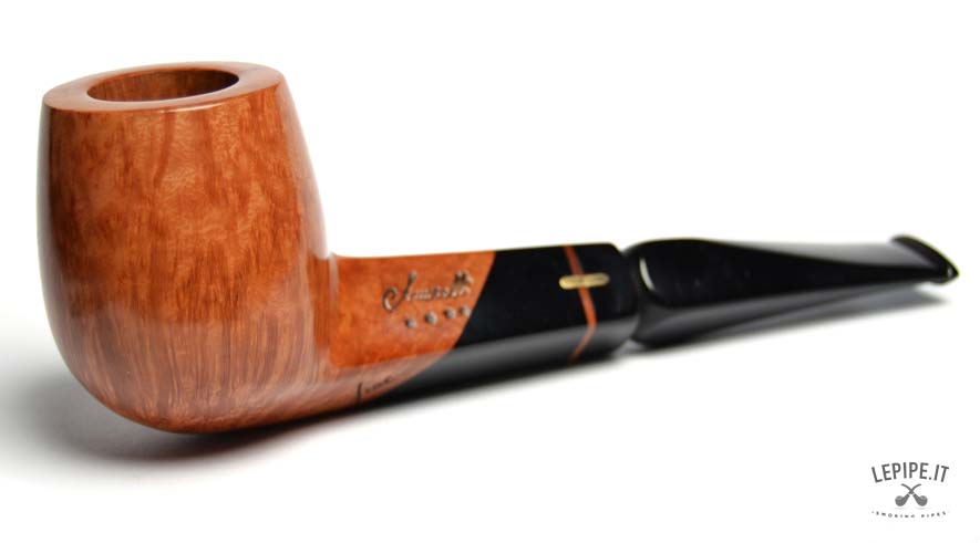 Pipa Amorelli - 4 stelle n. 35 Elaborazione Frac Bocchino in metacrilato Senza filtro Liscia Con altra elaborazione Diametro Interno: 21 mm. Diametro Esterno: 42 mm. Lunghezza: 145 mm. Altezza: 52 mm. Peso: 61 gr. Profondità: 35 mm.