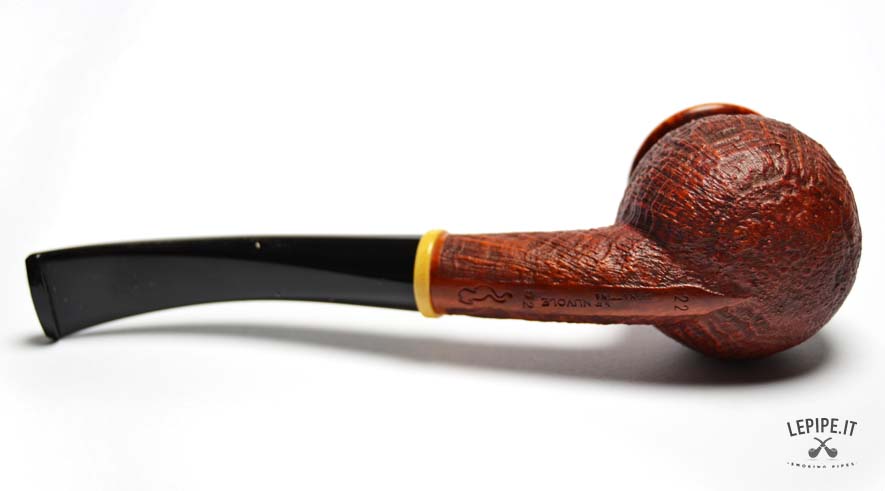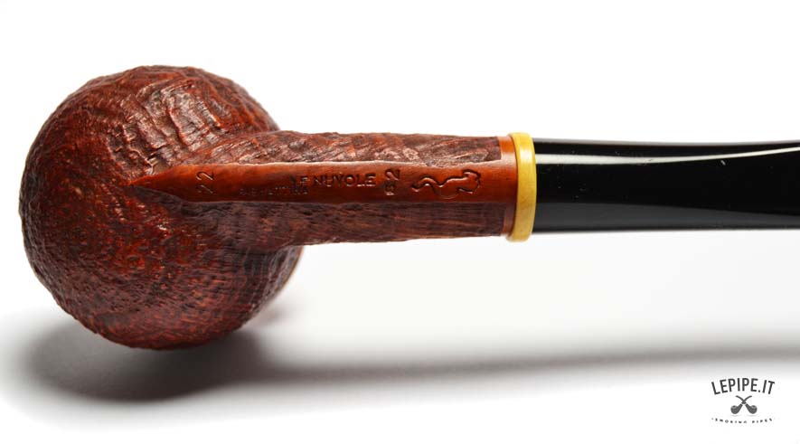 Pipa Le Nuvole - n. 33 Gruppo S2 Bocchino in ebanite Senza filtro Sabbiata Con altra elaborazione Diametro Interno: 19 mm. Diametro Esterno: 40 mm. Lunghezza: 143 mm. Altezza: 40 mm. Peso: 34 gr. Profondità: 29 mm.