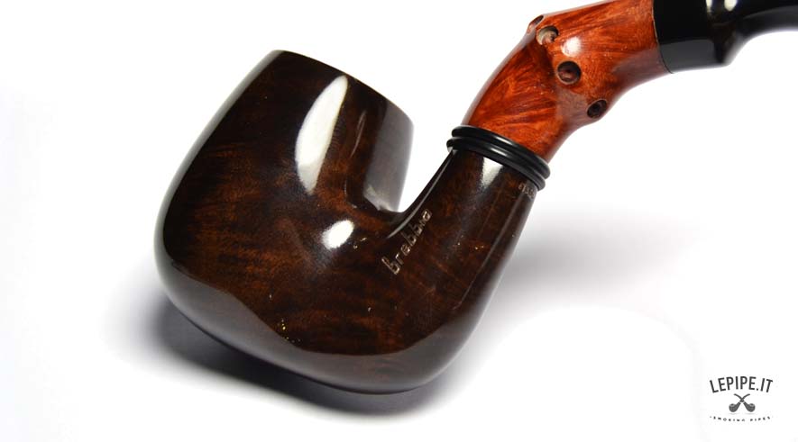 Pipa Brebbia - Buzzi n. 4 Noce Bocchino in metacrilato Con sede per filtro da 9 mm. Liscia Con elaborazione in bamboo Diametro Interno: 20 mm. Diametro Esterno: 38 mm. Lunghezza: 135 mm. Altezza: 48 mm. Peso: 56 gr. Profondità: 38 mm.