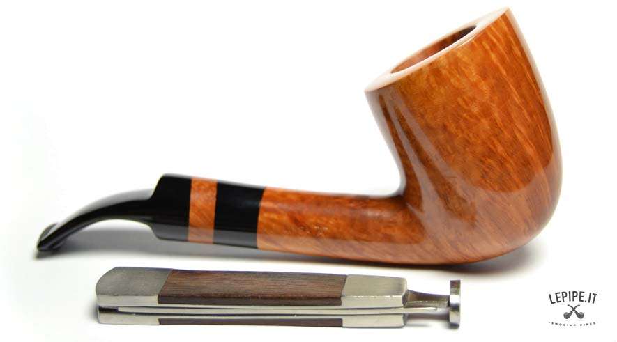 Con una forma Bent Billiard, questa pipa esprime eleganza attraverso una finitura liscia che esalta la radica lavorata con cura. Il bocchino in metacrilato senza filtro è pensato per offrire una fumata diretta e soddisfacente, garantendo una presa confortevole. Il fornello, con un ampio diametro interno di 23 mm e una profondità di 42 mm, offre spazio per godere di una fumata intensa. La lunghezza di 140 mm e l’altezza di 55 mm si uniscono per creare una pipa di 62 grammi, ben bilanciata e piacevole da tenere in mano, ideale per chi apprezza un’esperienza sofisticata e rilassante.