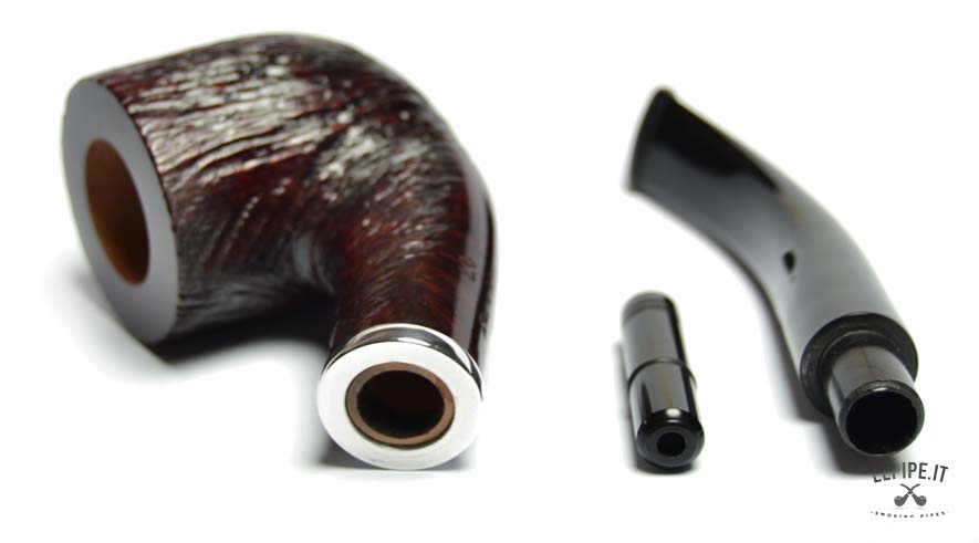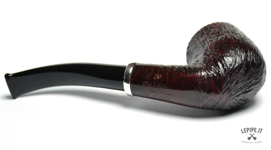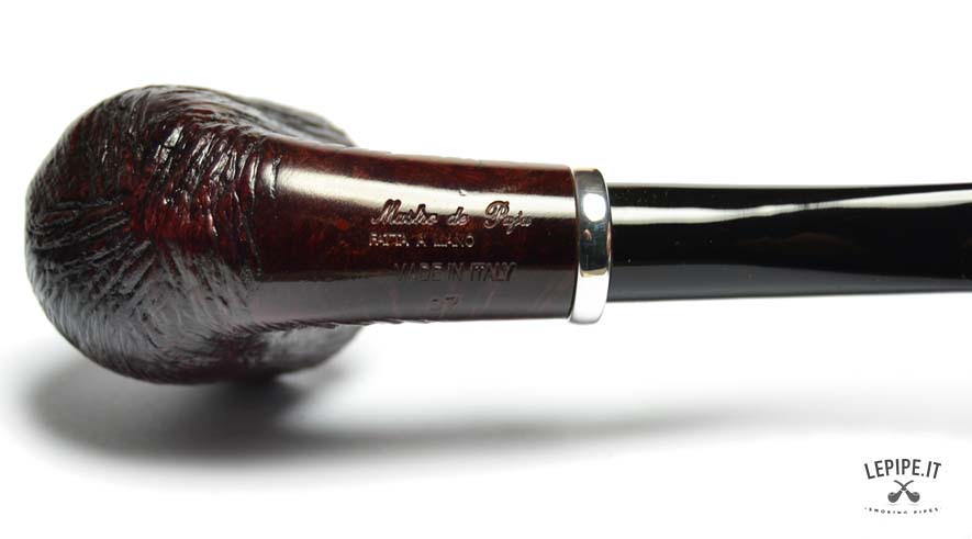 Pipa Mastro de Paja - Cortex n. 7  Bocchino in metacrilato Con sede per filtro da 9 mm. Rusticata Con altra elaborazione Diametro Interno: 20 mm. Diametro Esterno: 38 mm. Lunghezza: 150 mm. Altezza: 47 mm. Peso: 55 gr. Profondità: 36 mm.