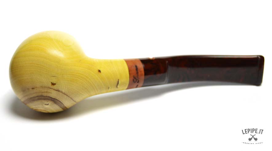Pipa Spanu - Limone n. 59  Bocchino in metacrilato Senza filtro In legno di limone Con altra elaborazione Diametro Interno: 21 mm. Diametro Esterno: 42 mm. Lunghezza: 146 mm. Altezza: 53 mm. Peso: 60 gr. Profondità: 39 mm.