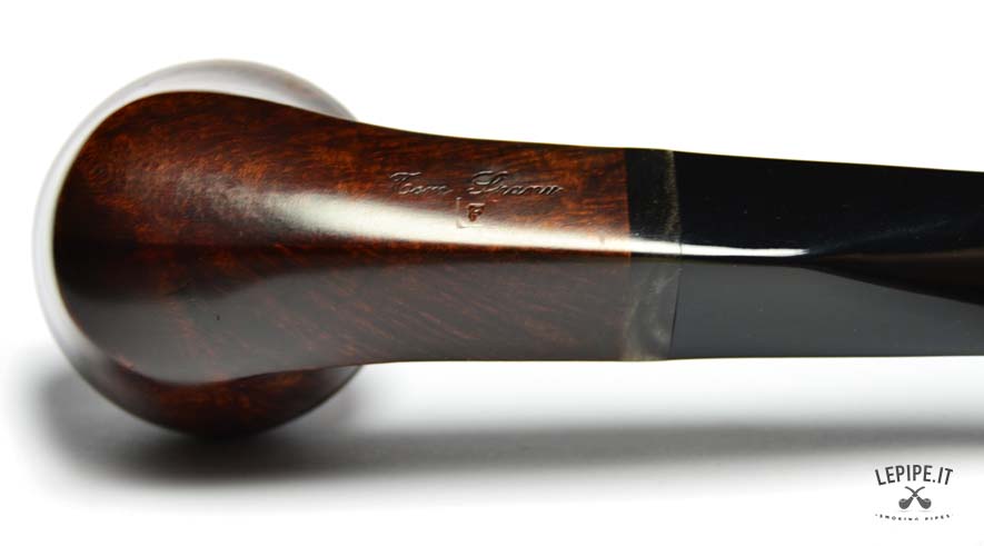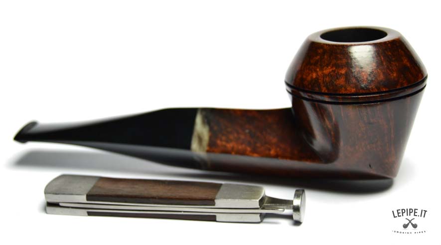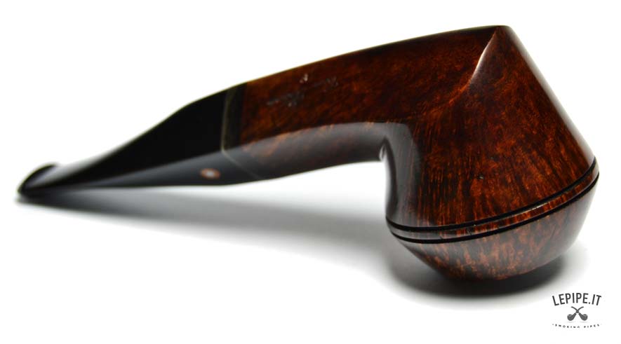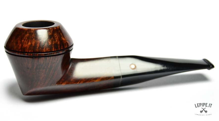 Pipa Spanu - F n. 63  Bocchino in metacrilato Senza filtro Liscia Con altra elaborazione Diametro Interno: 22 mm. Diametro Esterno: 47 mm. Lunghezza: 149 mm. Altezza: 51 mm. Peso: 66 gr. Profondità: 35 mm.