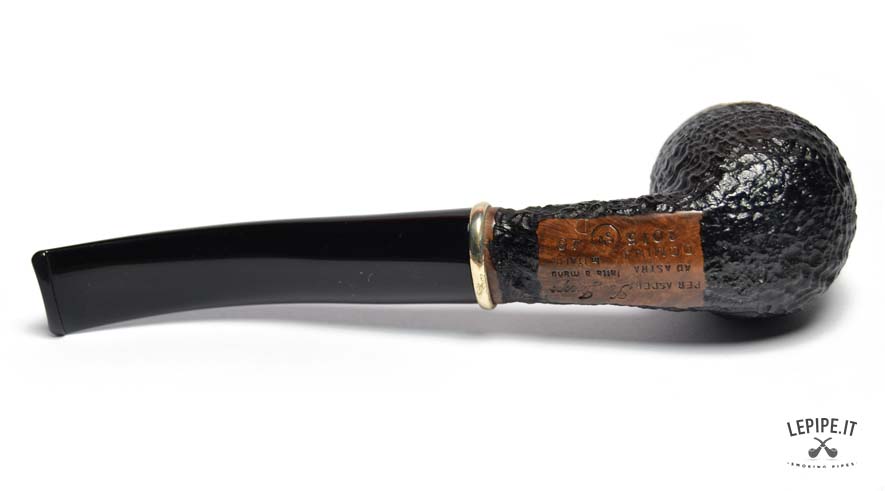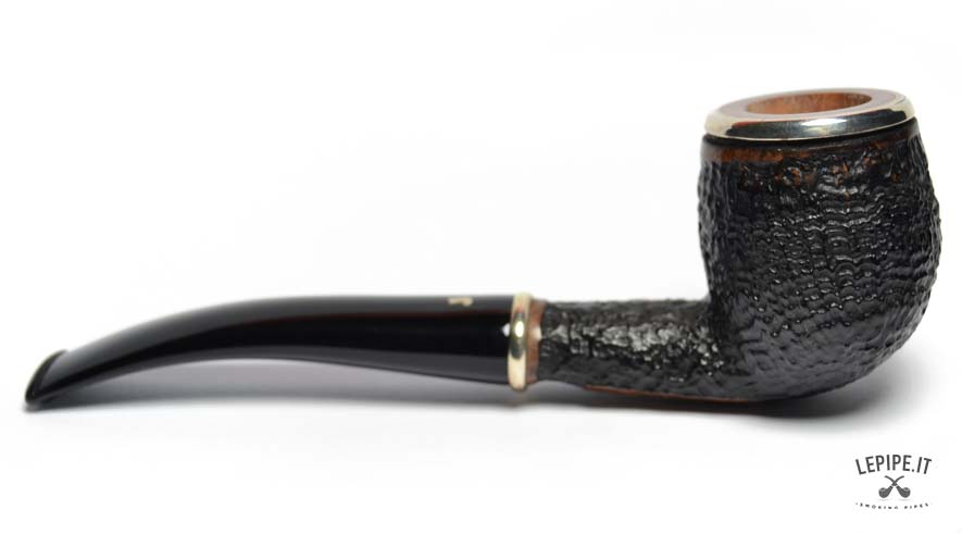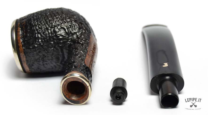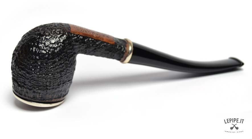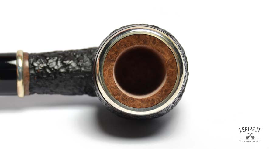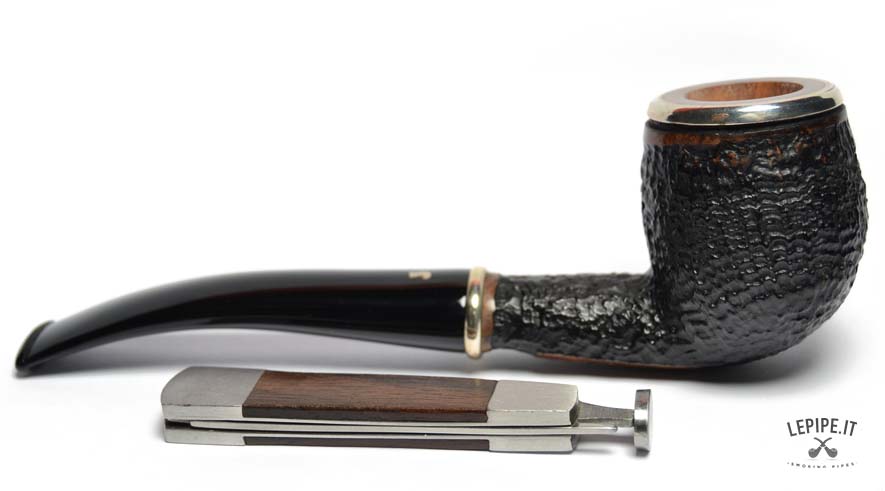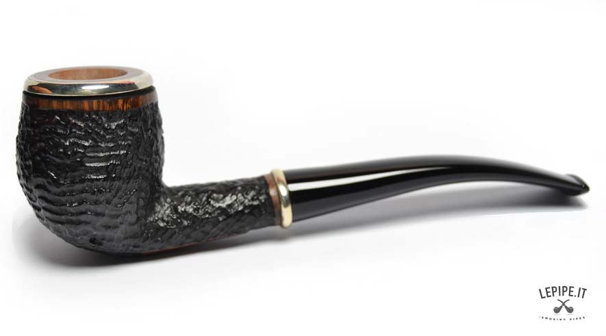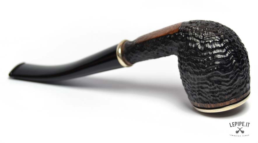 The surface is sandblasted (S1), masterfully executed to highlight the natural characteristics of the briar and give a distinctive touch. The curved mouthpiece, made of polished acrylic, guarantees a comfortable and ergonomic grip, making every smoke a pleasant experience.
