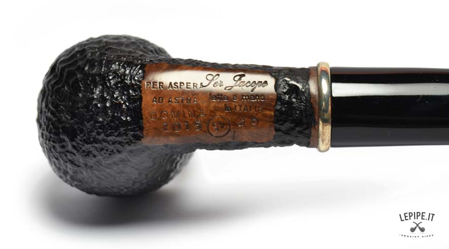 This pipe is one of the exclusive 333 made each year for the Domina series, and is distinguished by the number 49, engraved on the underside of the briar together with the words "Per Aspera Ad Astra" and the "Ser Jacopo brand. These details certify its authenticity and make it a unique piece and highly sought after by collectors.