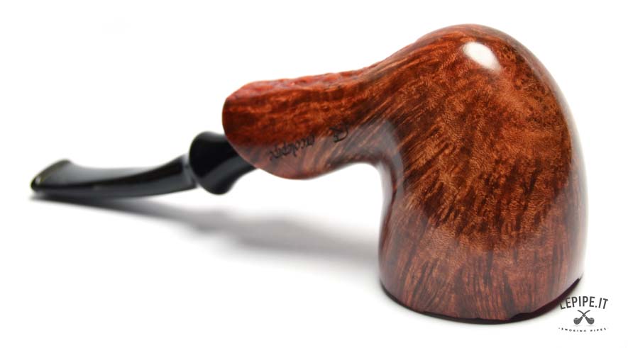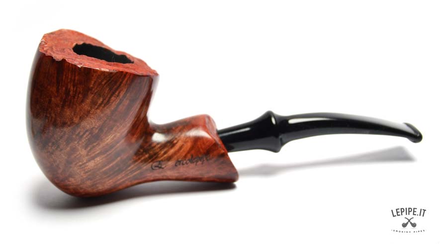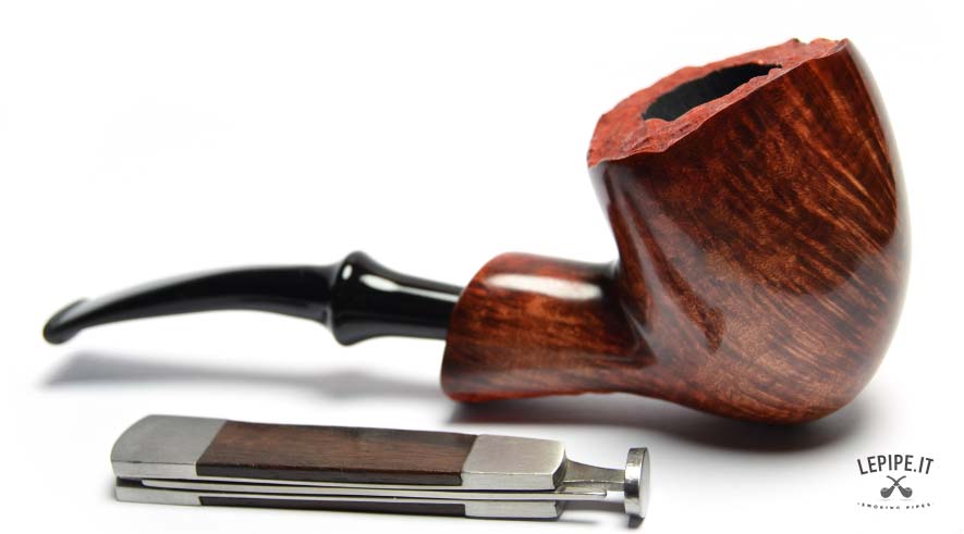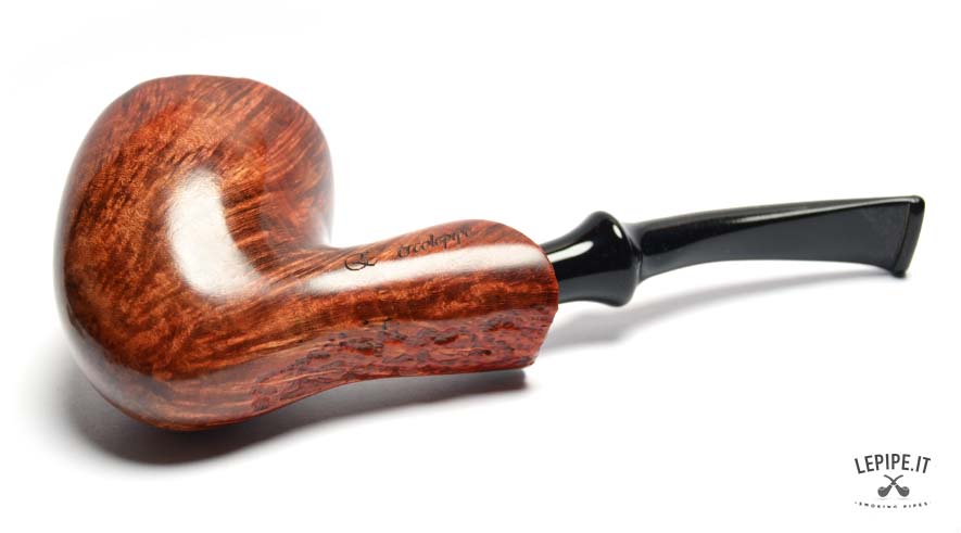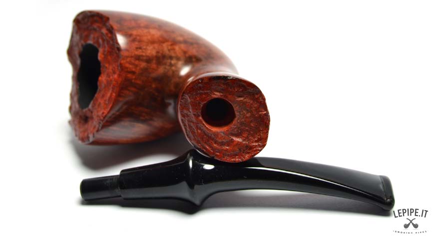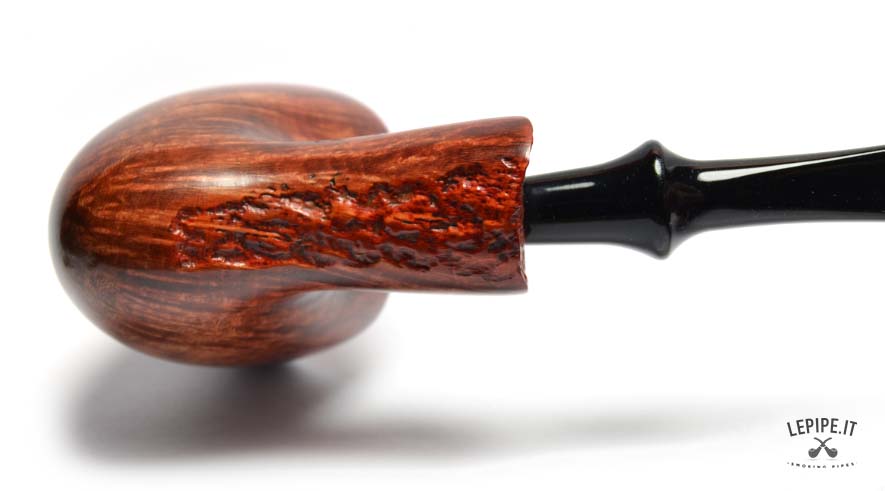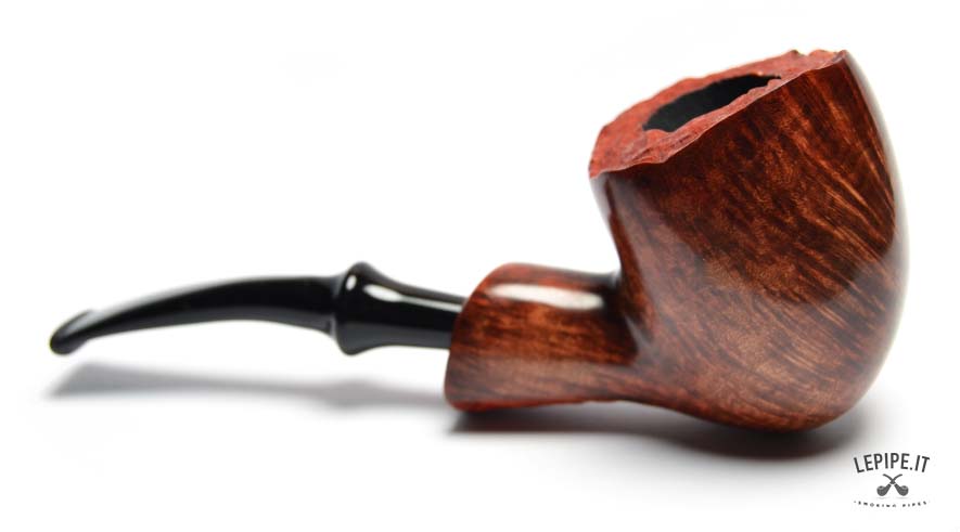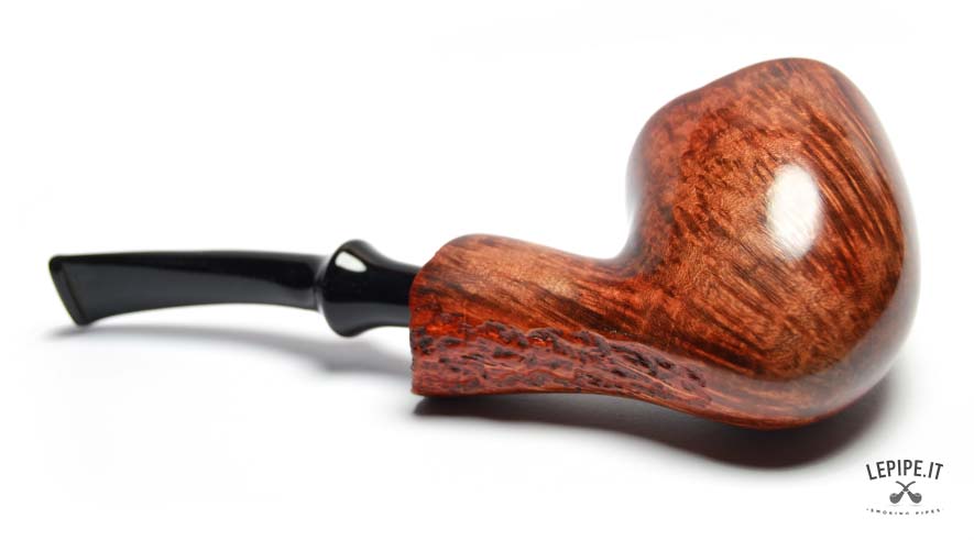 This Bogni pipe immediately stands out for its organic elegance and the natural contrast between the glossy finish and the raw plateau rim. The Freeform shape, fluid and well-balanced, highlights the lively grain of the briar with remarkable craftsmanship.