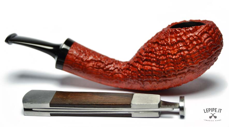 Pipa Penzo - n. 74  Bocchino in ebanite Senza filtro Sabbiata Senza elaborazione Diametro Interno: 18 mm. Diametro Esterno: 30 mm. Lunghezza: 123 mm. Altezza: 33 mm. Peso: 29 gr. Profondità: 28 mm.