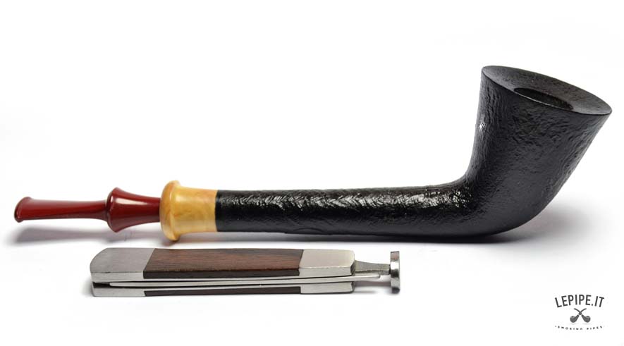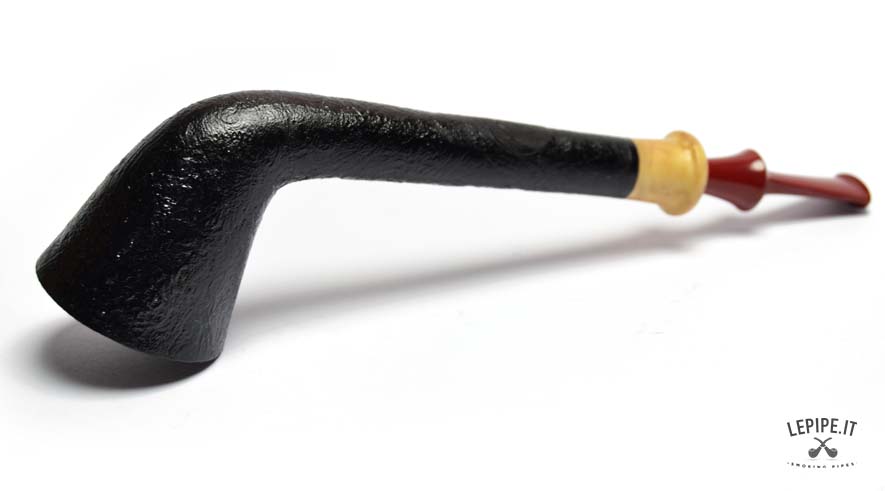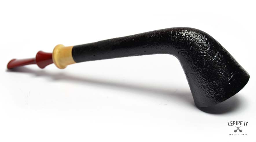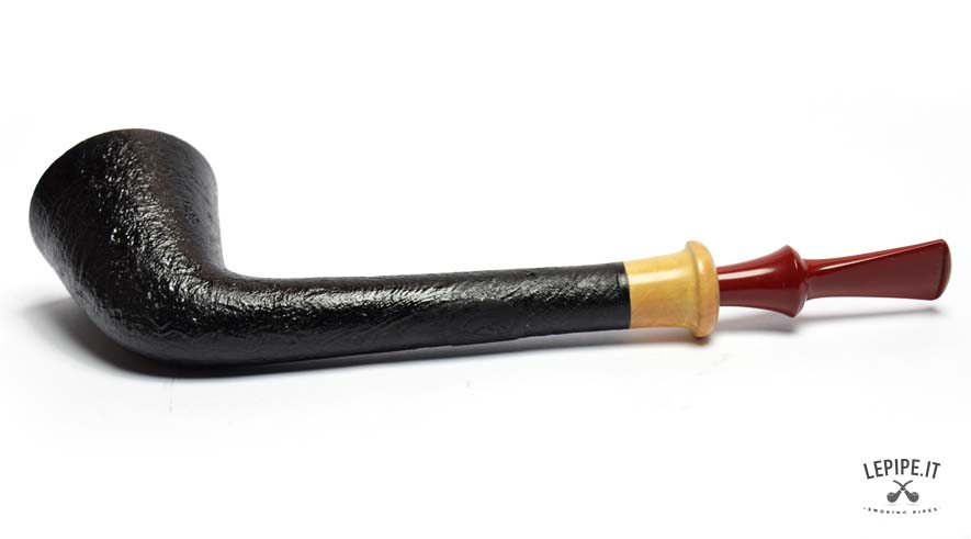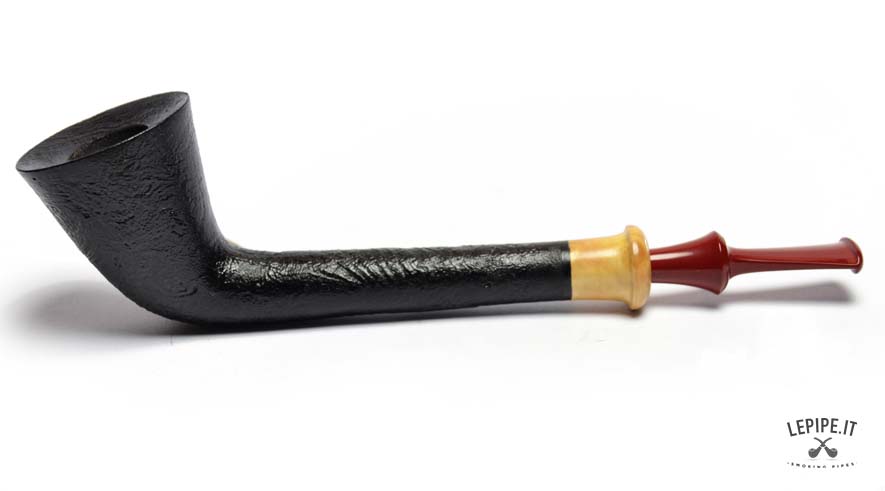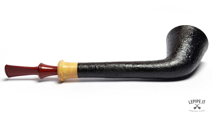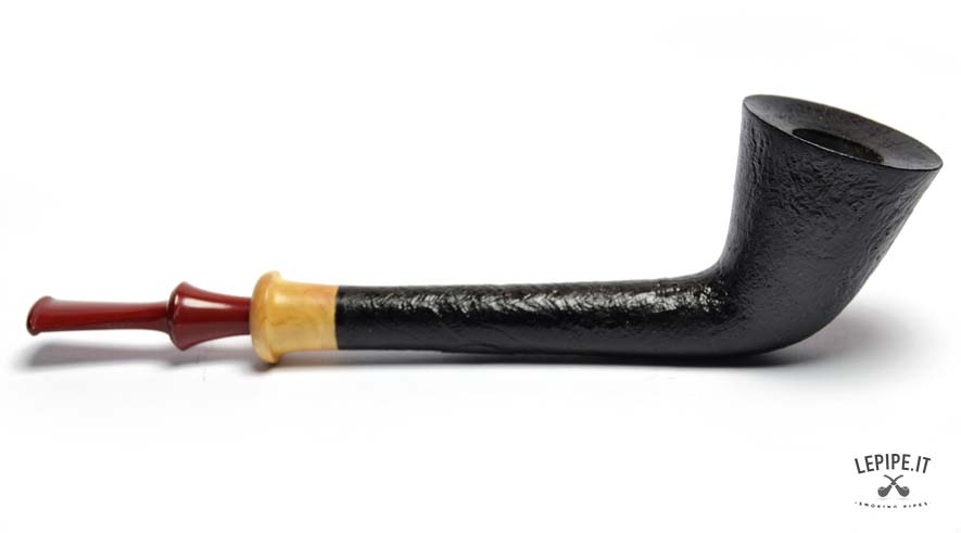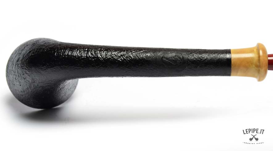 Artisanal Details: Every element of this pipe has been crafted with great care. The contrast between the black sandblasted bowl, the light wood insert on the shank, and the red cumberland mouthpiece reflects the artisan's skill in creating a unique and well-balanced piece.