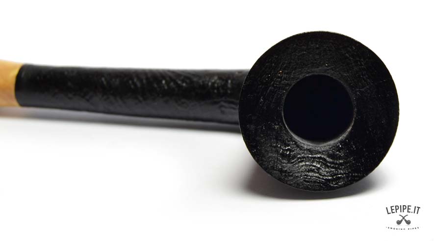 Material and Finish: The bowl is made from high-quality sandblasted briarwood, enhancing the natural texture of the wood and giving it a rustic yet sophisticated look. The matte black finish creates an elegant contrast with the light and vibrant details of the shank and mouthpiece.