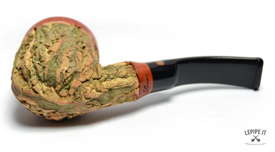 This handcrafted pipe is an exclusive example of Spanu's innovation, as the only producer in the world to use a patented technique that combines briarwood with a coating of authentic Sardinian cork. This distinctive feature makes each piece not only functional but also a unique work of art.