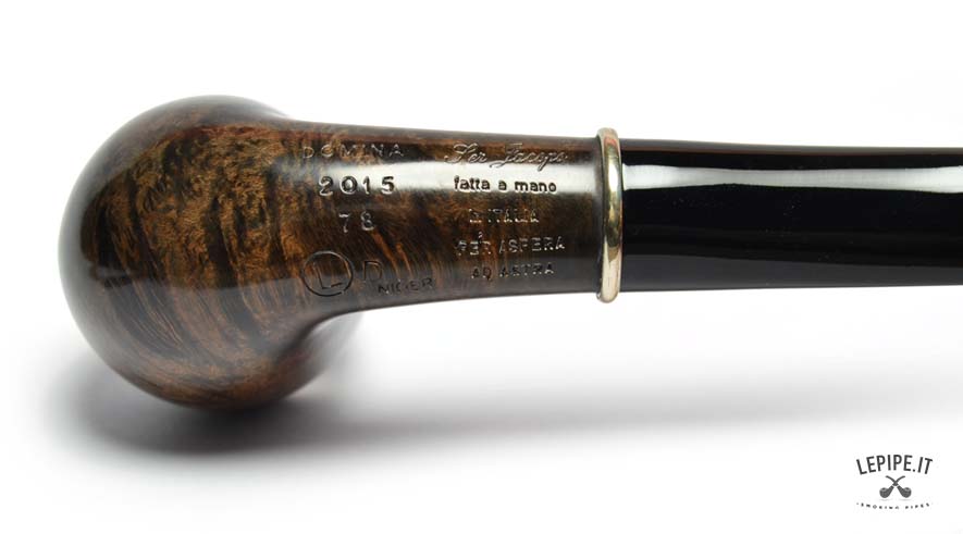 This pipe is part of the limited Domina series, marked with the unique number 78, emphasizing its exclusivity. The side of the briar bears engravings of "Ser Jacopo", "Per Aspera Ad Astra", and the production year 2015, certifying its quality and authenticity.