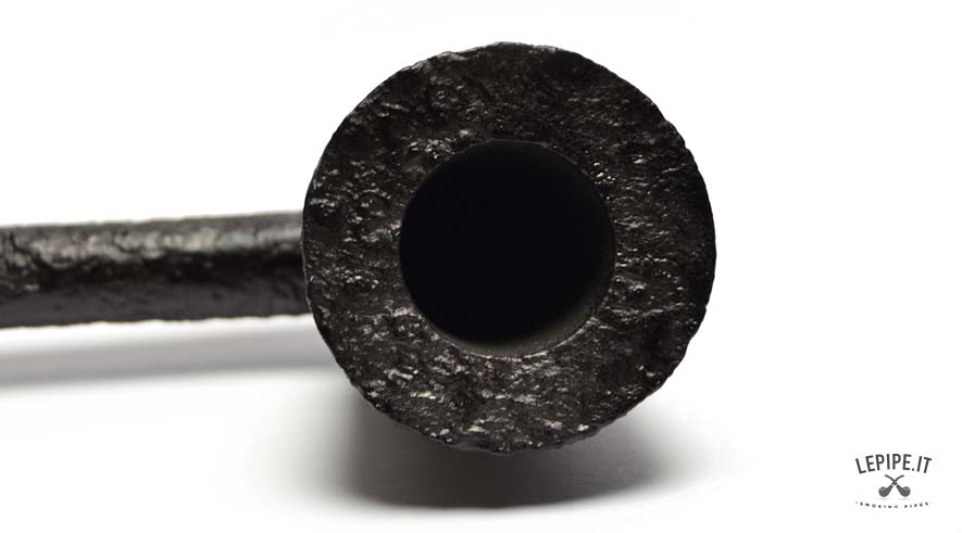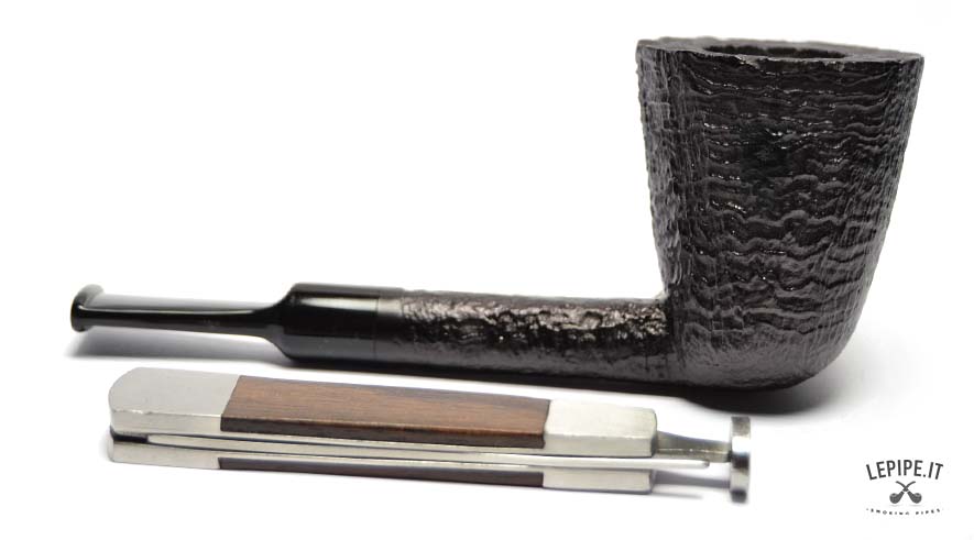 La finitura sabbiata scura esalta la trama naturale della radica, con un effetto tattile e visivo raffinato che testimonia la cura artigianale della lavorazione. Con un peso di soli 30 grammi, è estremamente leggera e confortevole, ideale anche per fumate prolungate.