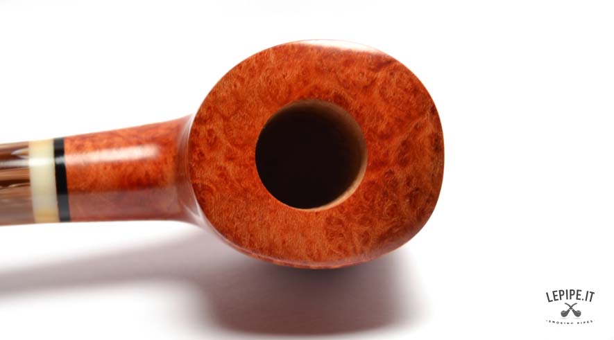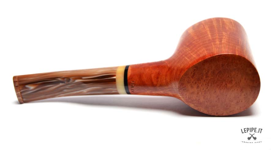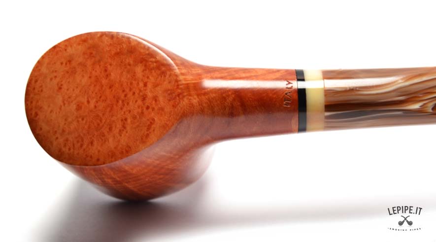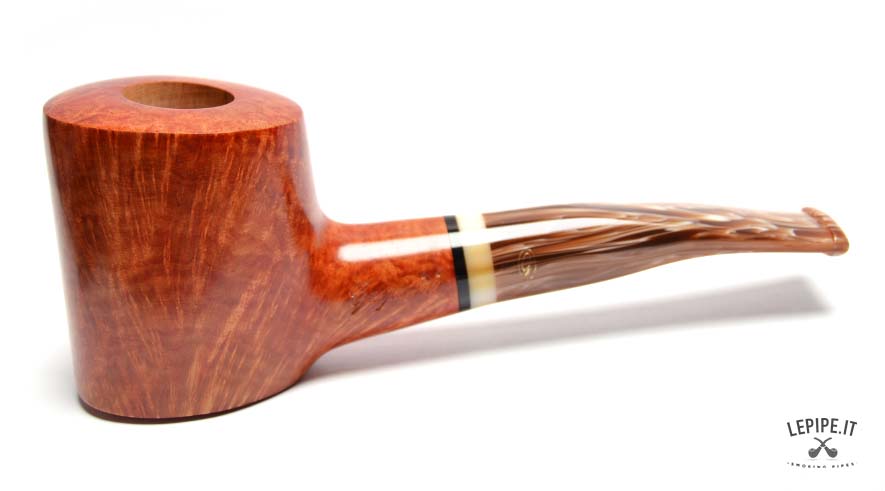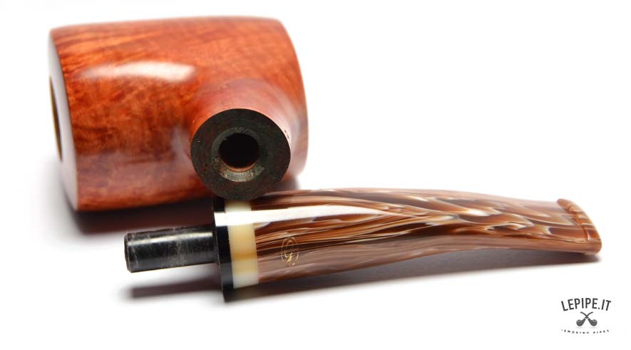 The light, marbled stem creates a refined contrast with the bowl and is enhanced by a subtle decorative band that adds a touch of elegance. This pipe reflects the philosophy of Gasparini: Italian artisan craftsmanship, respect for the material, and essential lines designed for a reliable and satisfying smoke.