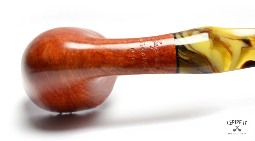The light marbled stem adds personality and elegance to the overall design. This pipe fully reflects the Gasparini philosophy: Italian artisan craftsmanship, respect for the material, and careful attention to detail, resulting in a pipe designed for an enjoyable and thoughtful smoking experience.