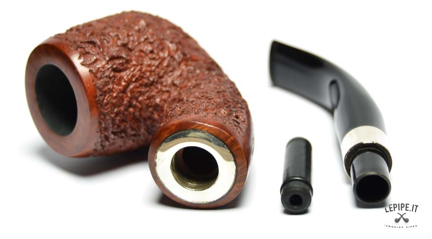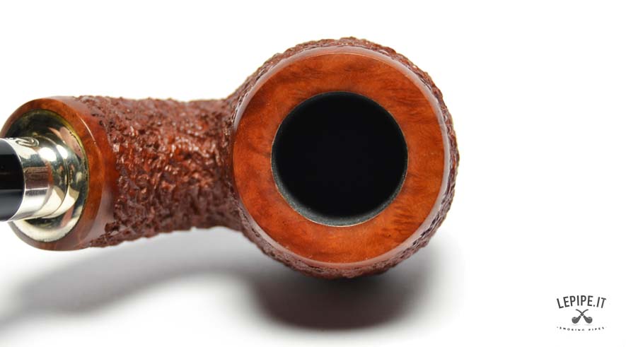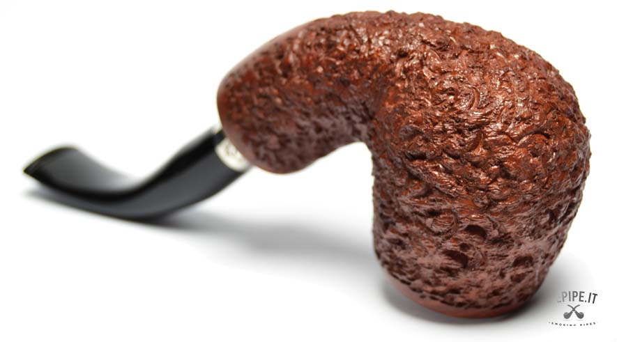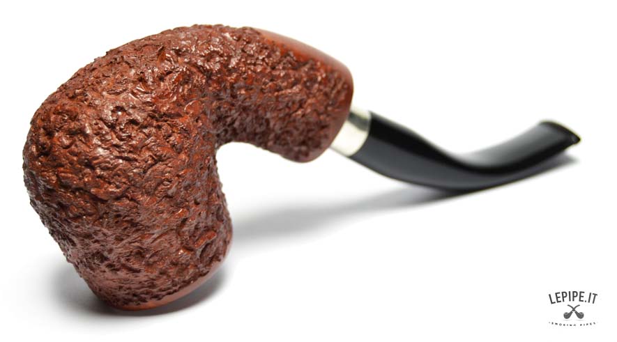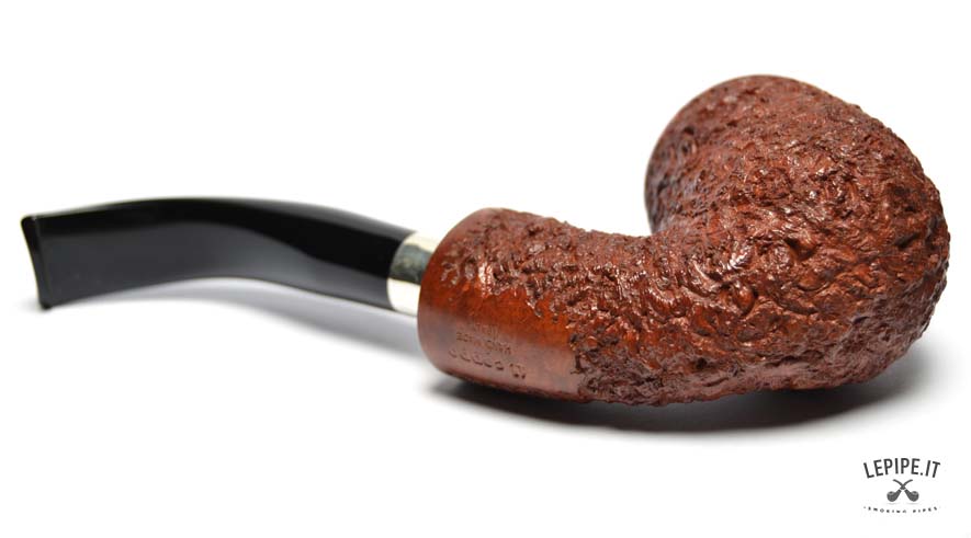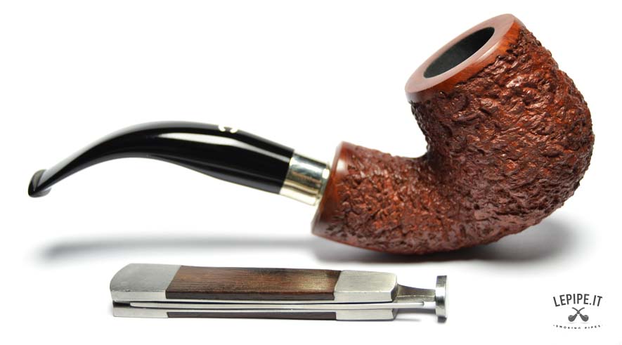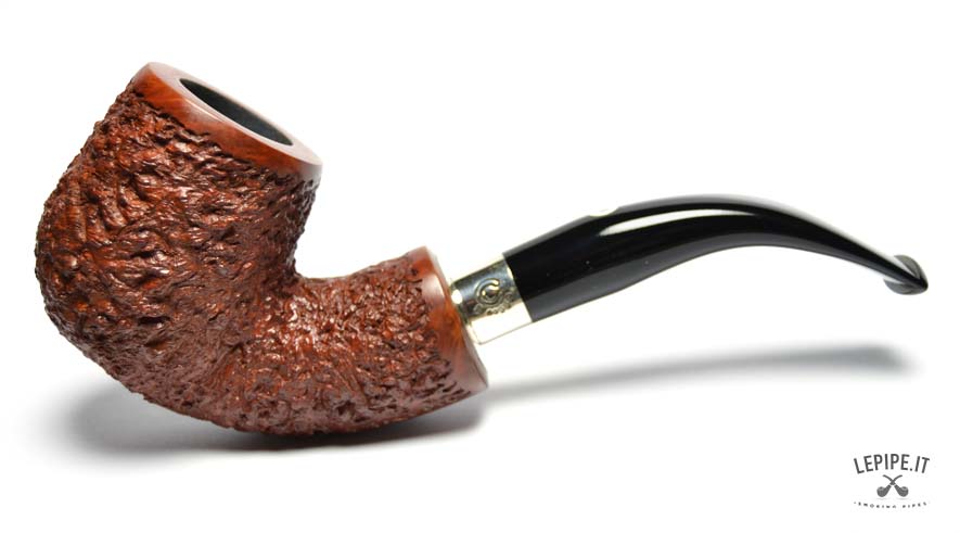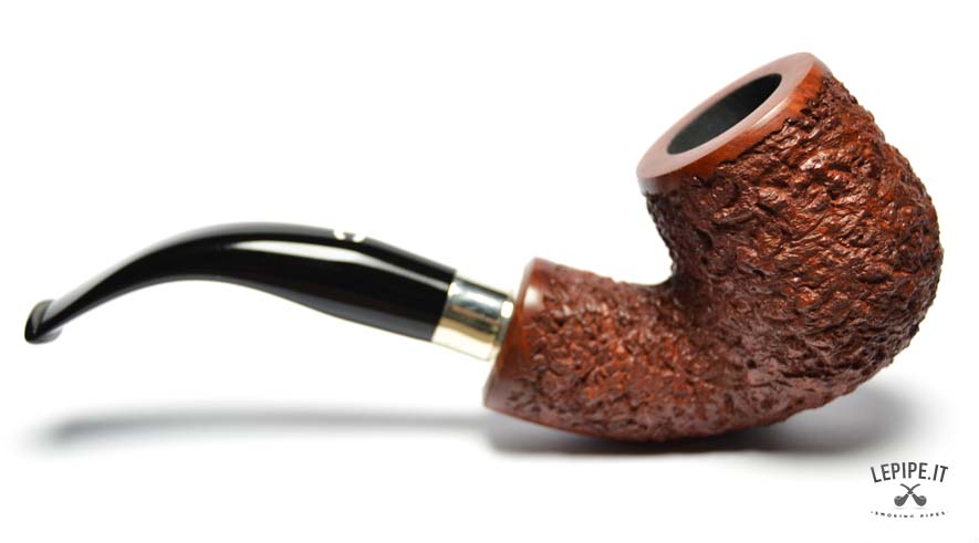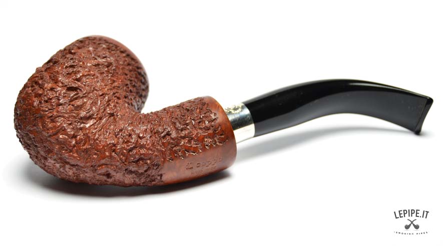 This pre-1995 Epoca Imperatori Bent Billiard pipe is an exquisite example of Italian craftsmanship, combining a classic silhouette with a rustic finish. The deeply textured, rusticated bowl gives the pipe a rugged and natural appeal, enhancing grip while showcasing the rich character of the briarwood. The contrast between the rustic finish and the smooth, polished rim—crafted in a warm, earthy tone—adds sophistication and visual depth to this piece.