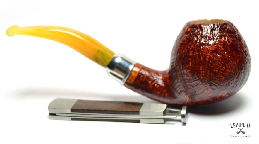 sandblasted briar, with a textured finish that highlights the wood’s natural grain.