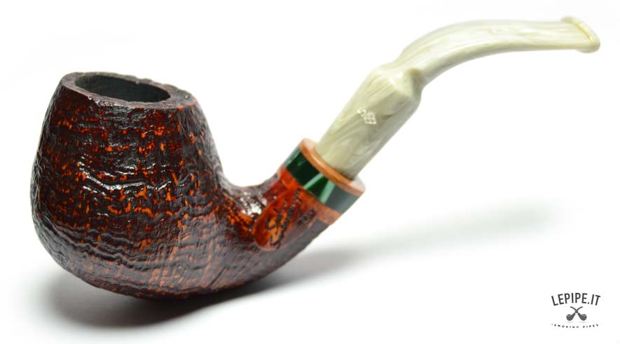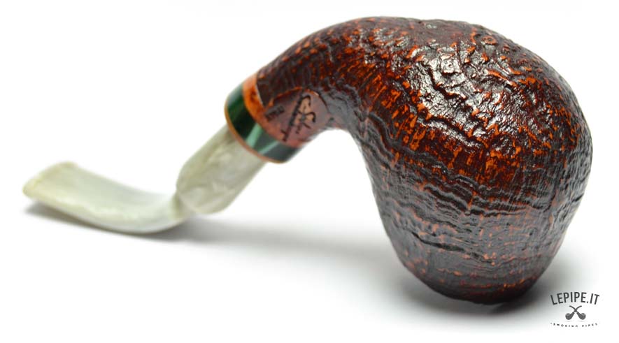 sandblasted briar. The curved shape ensures a comfortable, hands-free smoke, while the brandy bowl offers a pleasant and steady grip.