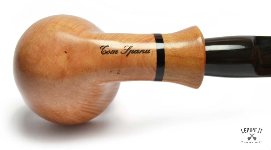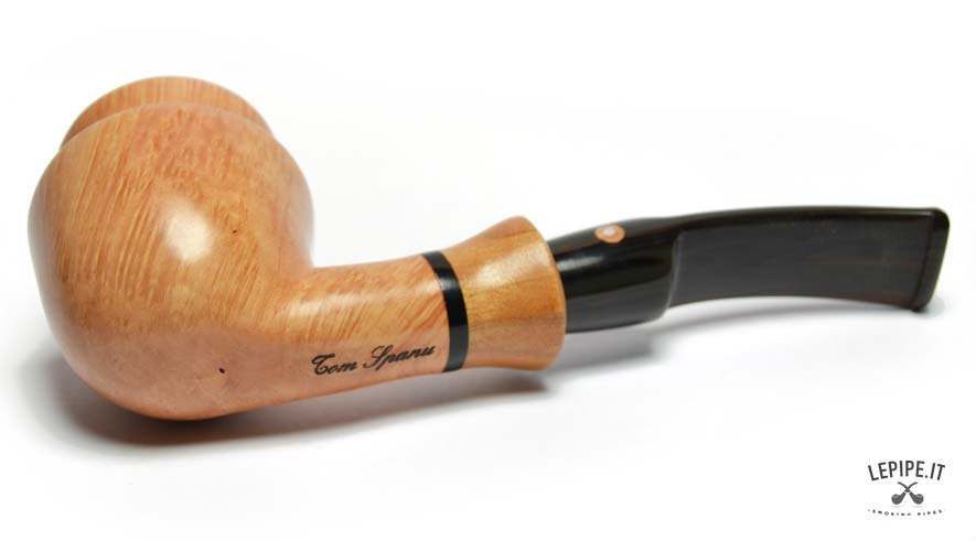 The engraved "Tom Spanu" signature adds authenticity and a personal touch, reflecting the artisan’s dedication to quality. Entirely handmade, this pipe is an excellent choice for collectors and connoisseurs seeking a functional yet sophisticated smoking accessory.
