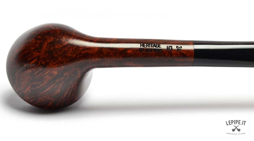 The engraving "Heritage by Nuttens H3 24" on the shank marks the quality and craftsmanship behind this pipe, a testament to the attention to detail in its construction.