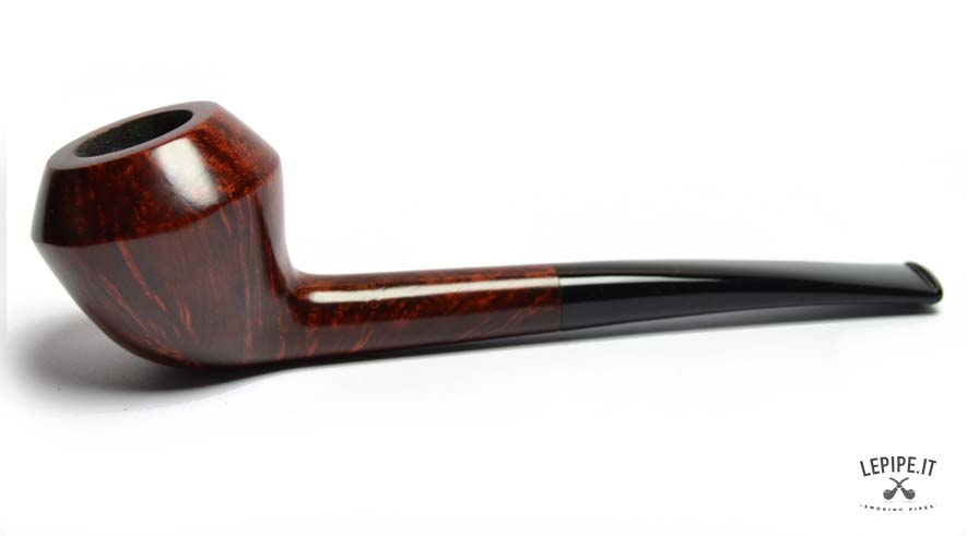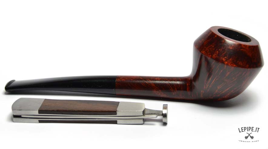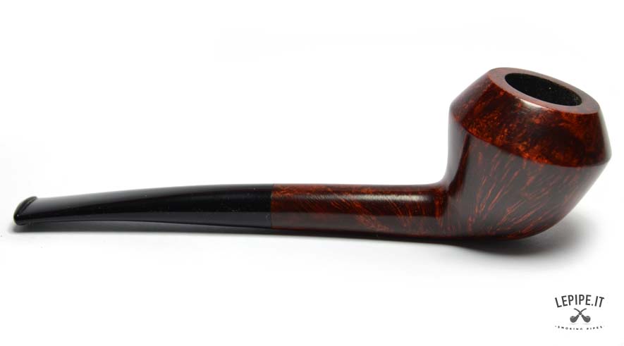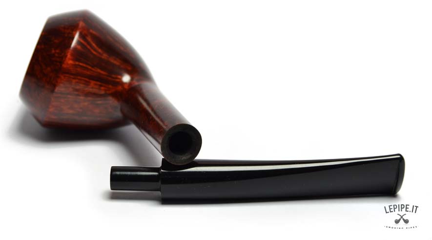 The bowl, with its unique geometric and angular shape, is not only visually striking but also ensures excellent combustion. Its sturdy walls provide effective heat control. The high-quality briar has a polished finish that enhances the depth of the color and highlights the natural grain patterns of the wood.