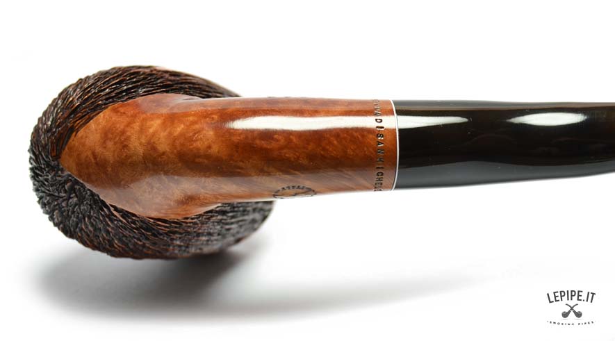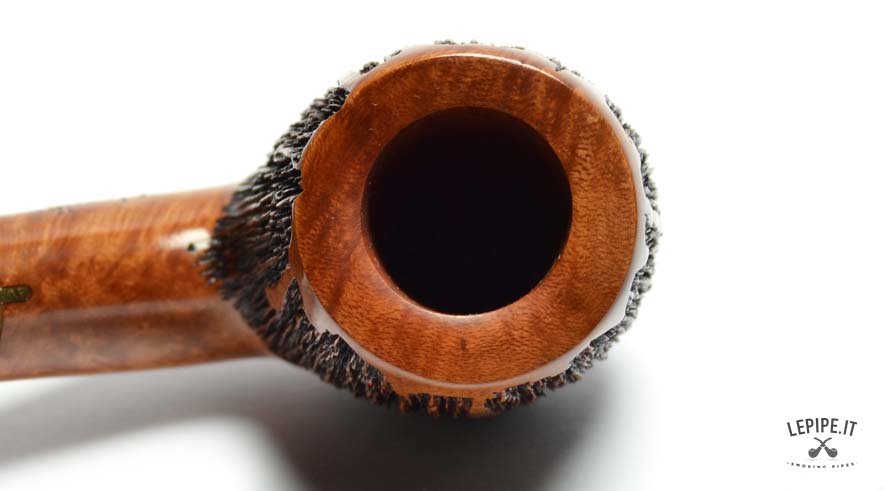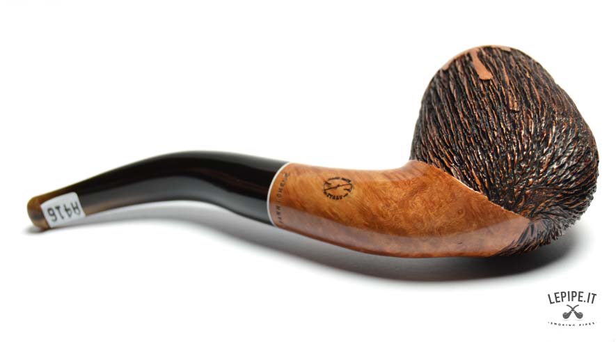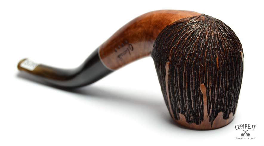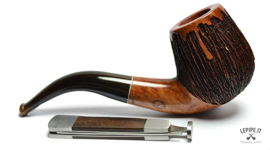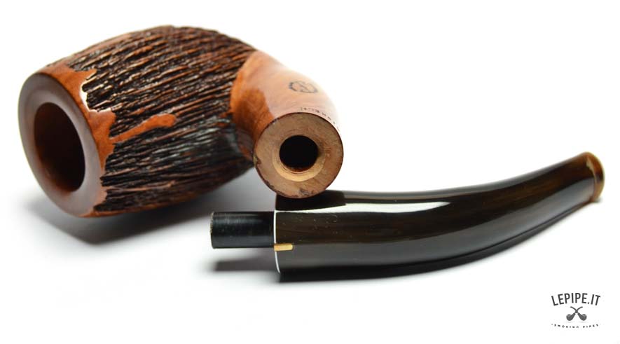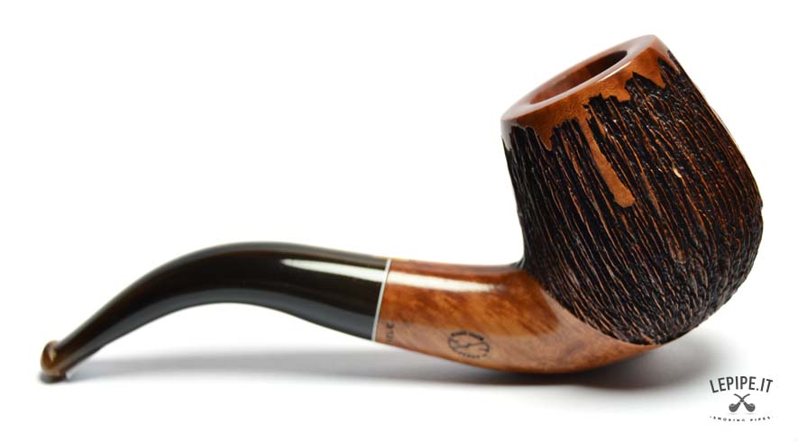 The Amorelli 4 Stelle Bent Billiard pipe is a refined blend of artisanal beauty and smoking comfort, crafted for those who appreciate elegant design and functional balance. Made from high-quality Italian briar, this pipe showcases a distinctive finish that contrasts deep rustication with smooth upper sections, enhanced by flowing streaks that drip from the rim, giving it a bold and dynamic appearance. The Bent Billiard shape features a generous, flowing curve that provides excellent hand feel and optimal weight distribution during use. The high-gloss methacrylate stem is complemented by a light-colored ring that tastefully connects it to the shank. The bowl's proportions—20 mm internal diameter and 40 mm external diameter—offer a satisfying tobacco capacity while maintaining great manageability, making it ideal for both short and extended smoking sessions. This pipe belongs to the 4 Stelle line, Amorelli’s classification for high-quality pipes that combine fine materials and craftsmanship with a more accessible character than their top-tier grades. A piece designed to offer both aesthetic appeal and practical pleasure, perfect for the refined smoker who values authentic, handmade quality.
