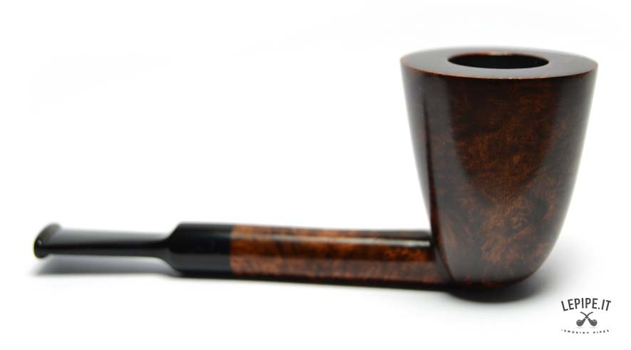 This Dublin shape pipe features elegant lines and perfectly balanced proportions, with the classic upward-flaring bowl that promotes an even burn. The briar is enhanced by a smooth, polished finish in rich brown tones, highlighting the natural beauty of its grain.