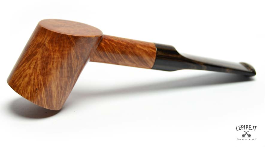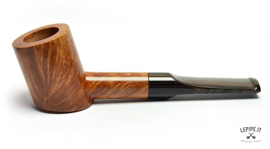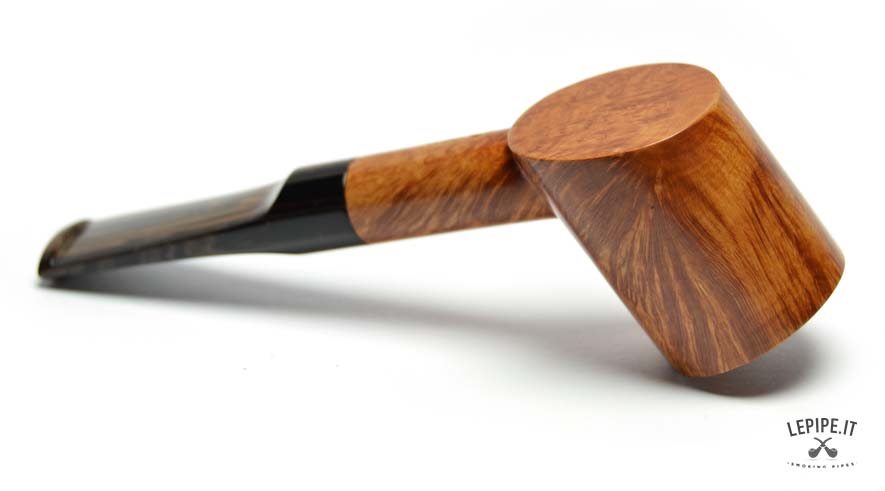 A minimalist and elegant Poker pipe crafted by Manù, the signature brand of Italian artisan Emanuele Bruno, known for blending essential form with artistic expression. Its clean, precise lines reflect a deep understanding of proportion and balance. The cylindrical bowl rises vertically on a flat base, allowing the pipe to stand upright—just as a true Poker should. Made from high-quality light briar, it showcases a compact and harmonious flame grain, brought to life by a glossy finish that enhances the wood’s natural warmth. The Cumberland mouthpiece, with its refined brown and black striations, integrates seamlessly into the linear design, offering visual balance and a comfortable grip. Lightweight and compact, at just 25 grams and 39 mm in height, it's ideal for an easy, everyday smoke without sacrificing aesthetic pleasure. A contemporary gem for those who appreciate a handmade Italian pipe with a refined yet understated character.